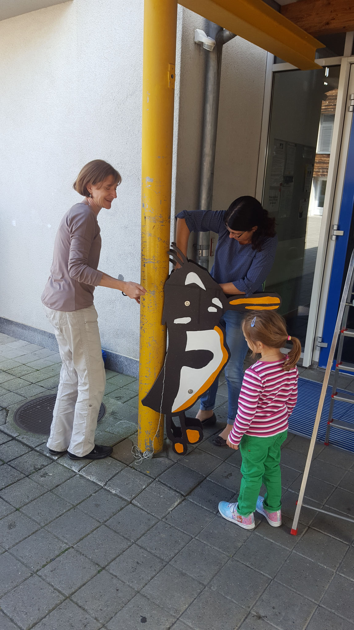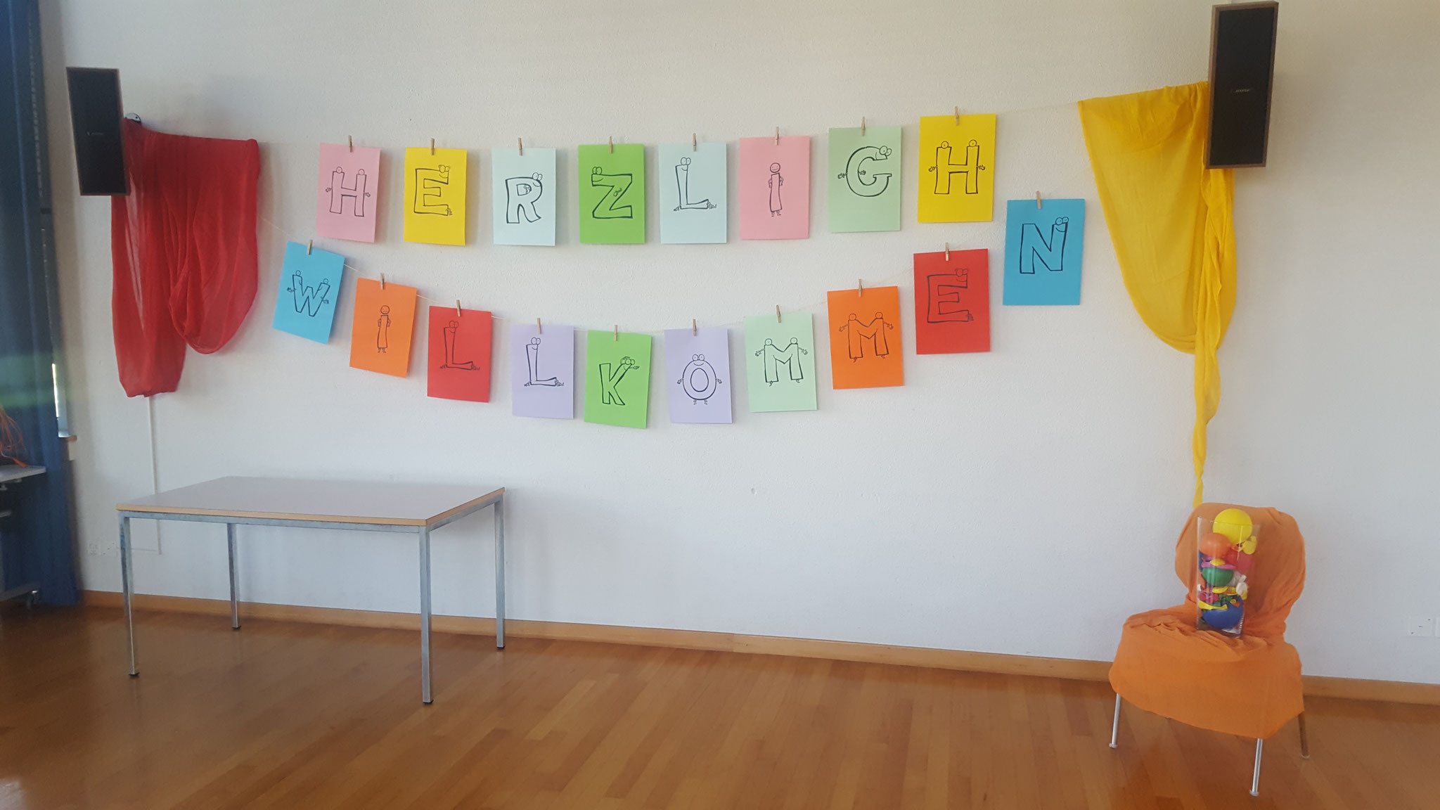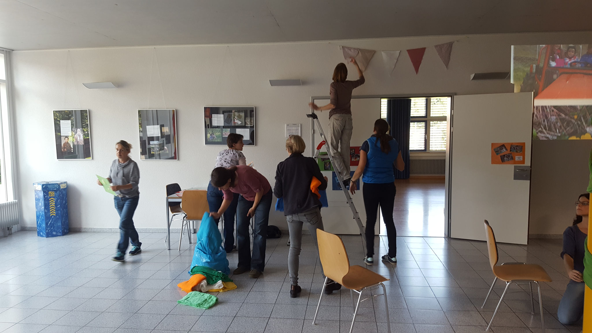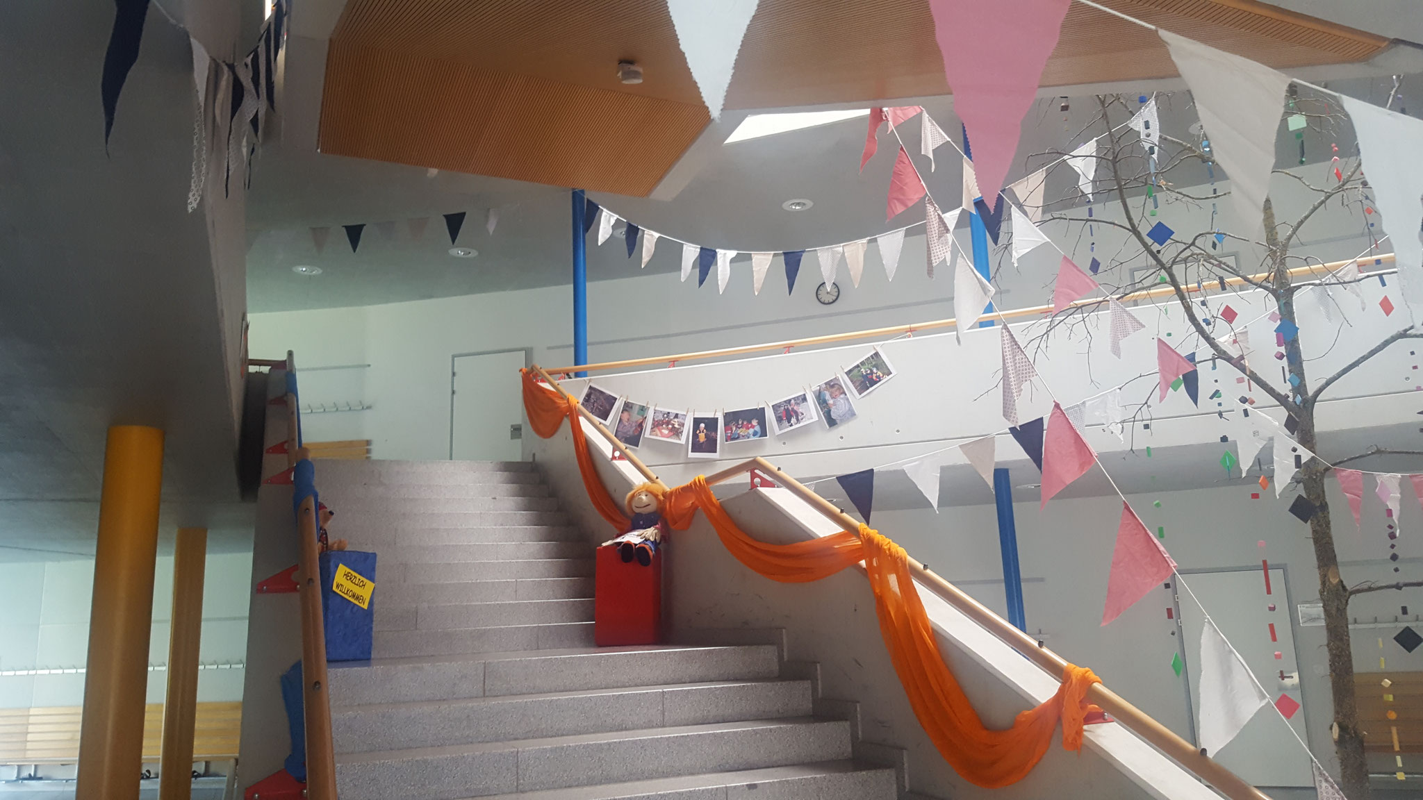 Die Spielgruppenleiterinnen schmückten am Mittwochnachmittag das Sekundarschulhaus für das 25-Jahr-Jubiläum. Es sieht für die Festlichkeiten sehr einladend aus. Die Spielgruppe lädt alle Klassen der Gemeinde ein mitzufeiern. Der Clown Jeanloup wird versuchen die Kinder und Jugendlichen am Donnerstag und Freitag während einer Lektion herzhaft zum Lachen bringen. Sein Motto ist - je grösser der Dachschaden, desto besser der Blick für die Sterne. Sind wir also gespannt.