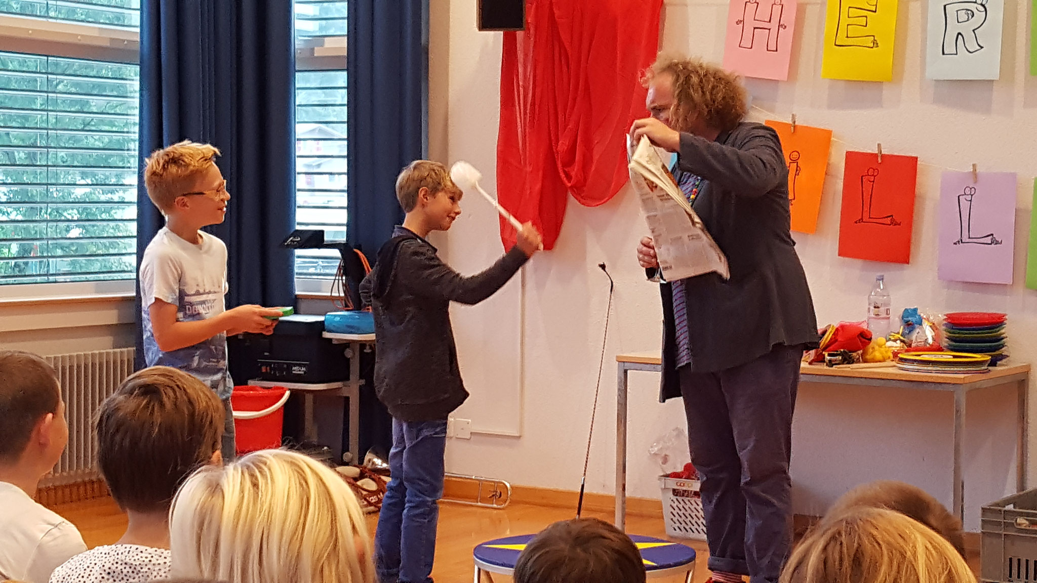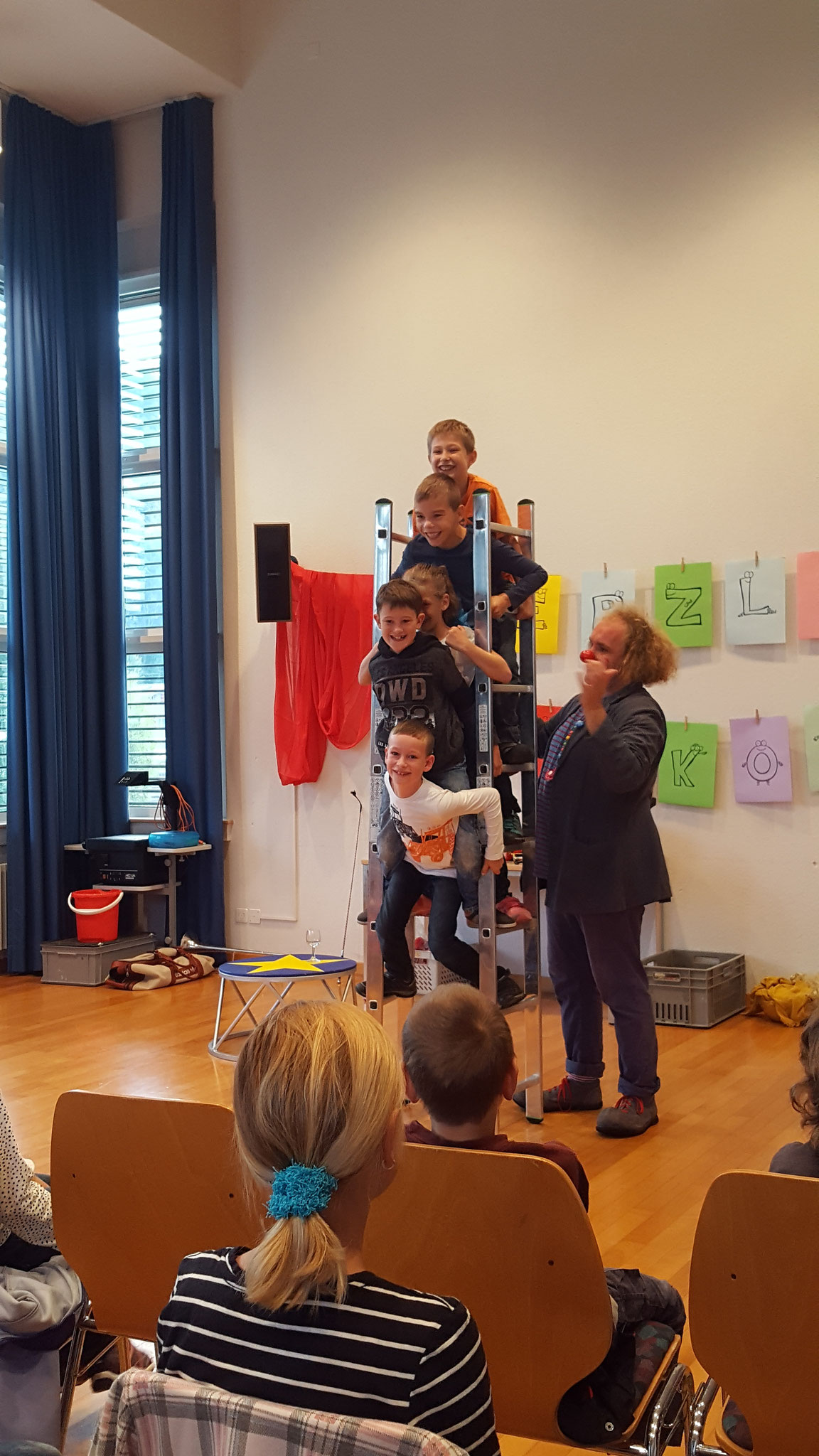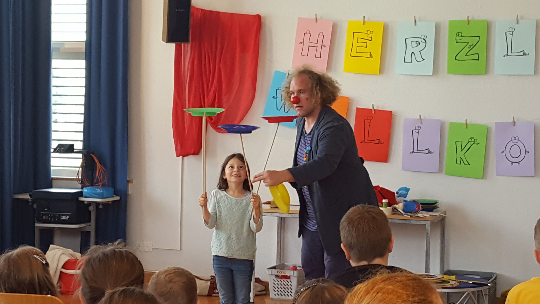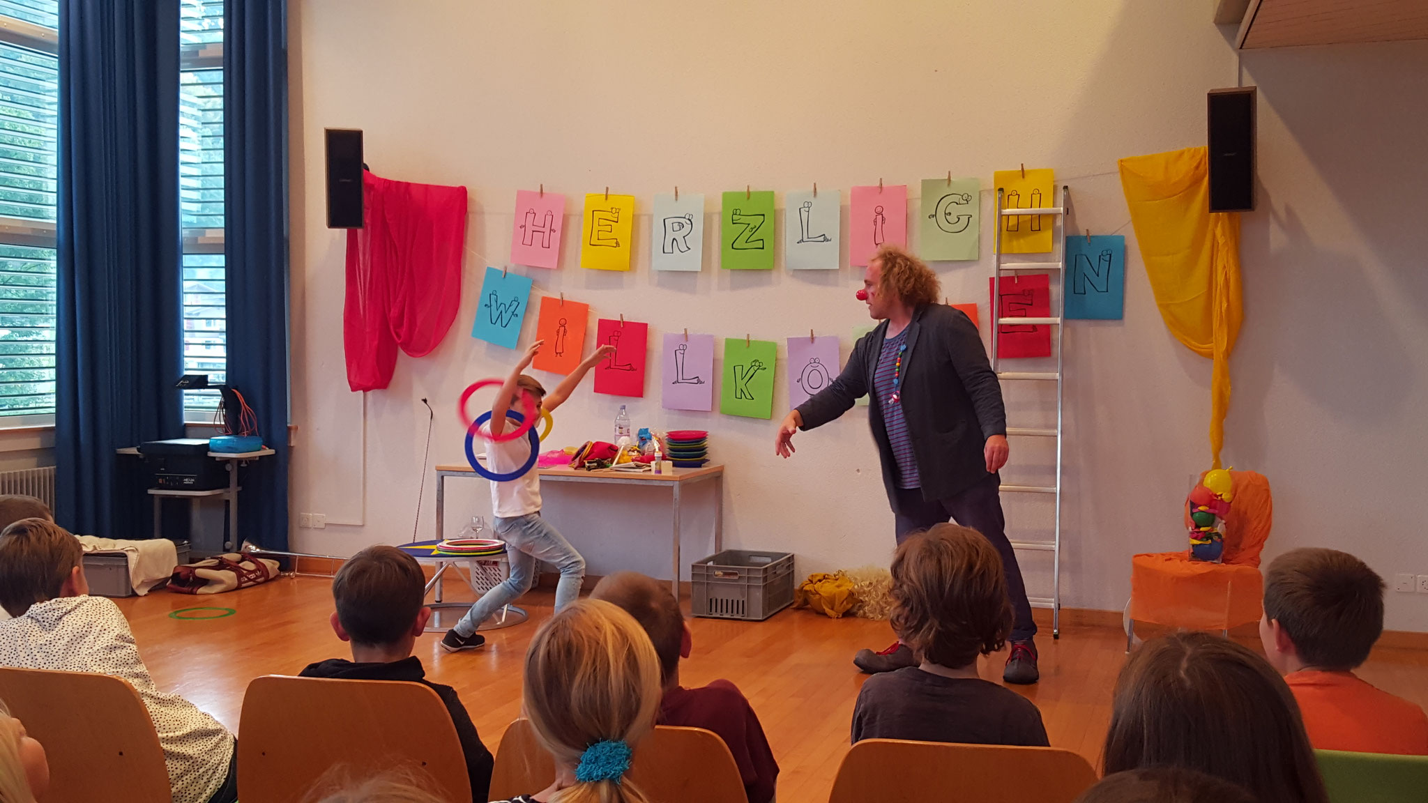 Die Spielgruppe feierte ihr 25jähriges Jubiläum und lud alle Klassen aus Menzberg, Geiss und Menznau an die Vorstellung des Clowns Jeanloup ein. Gespannt warteten die Schülerinnen und Schüler aber auch der Clown auf den Start. Die Spielgruppenleiterinnen begrüssten das Publikum herzlich zu diesem Anlass.