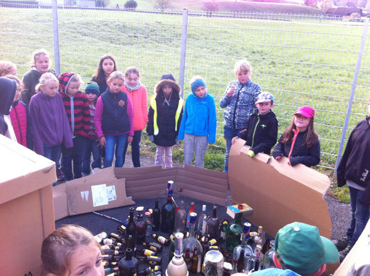 In altersdurchmischten Gruppen mussten vier Posten durchlaufen werden. Frau Imbach stellte den Betrieb vor, bei Roger lernten die Kinder den Müll zu entsorgen, damit sie dies nicht vergessen, probte der Schulleiter mit den Kindern ein Mülllied ein und beim letzten Posten konnten sie in den Gruppen ein Mandala aus Recyclingmaterialien legen. Die Schulen Menznau haben sich bei Frau Imbach herzlich für das ausserordentlich gelungene Angebot zu bedanken. Auch haben wir herausgefunden, wie schwer die Wandergruppe von 122 Schülerinnen und Schülern, sowie acht Lehrpersonen mit Sack und Pack waren. Mit einem kleinen Trick haben wir die Marke von sechs Tonnen geknackt.