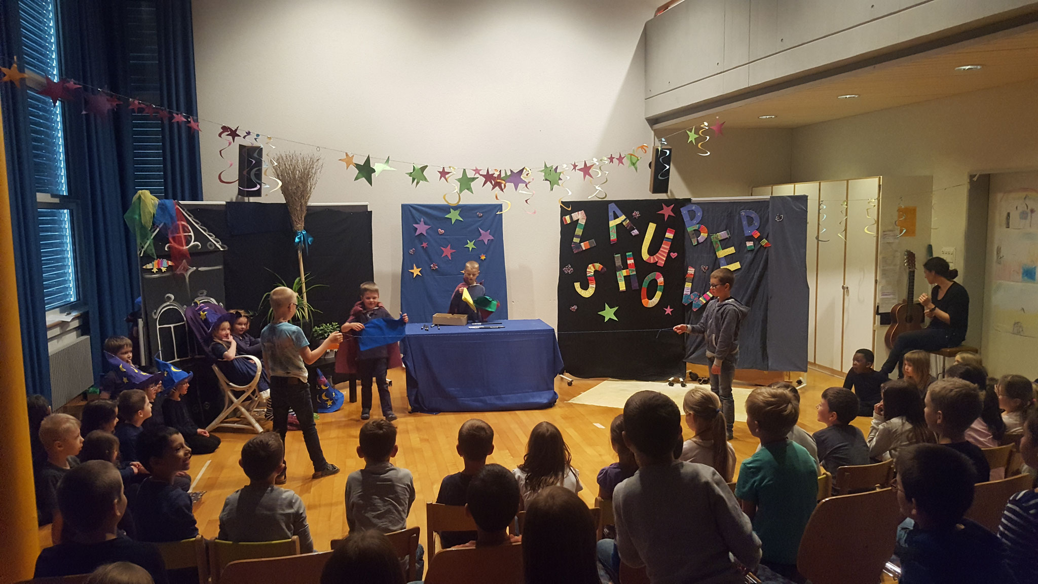Welch eine tolle Zaubershow. Die Kindergartenkinder zeigten den Zuschauern viele verschiedene Zaubertricks, welche sie im Unterricht erlernen durften.