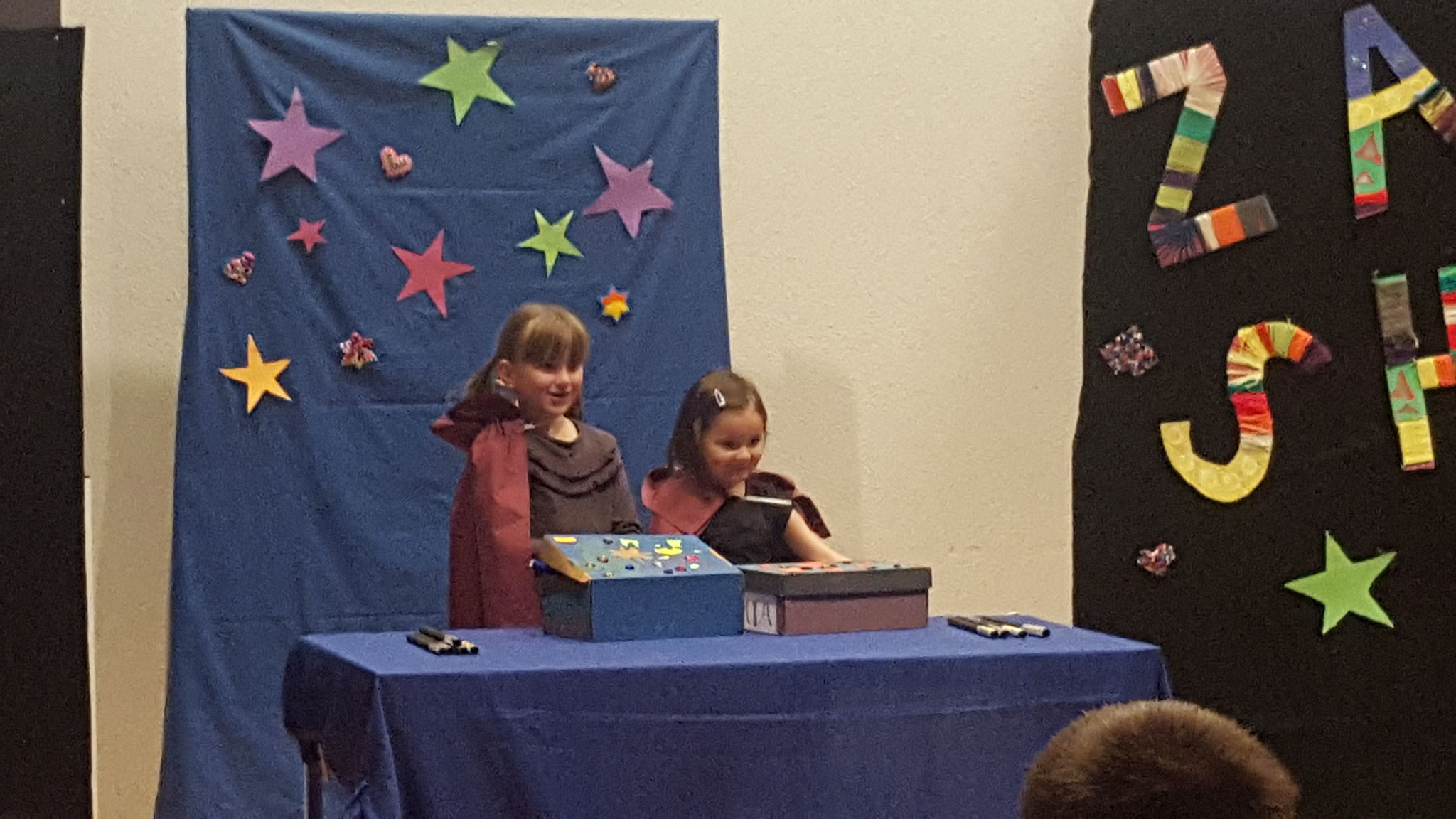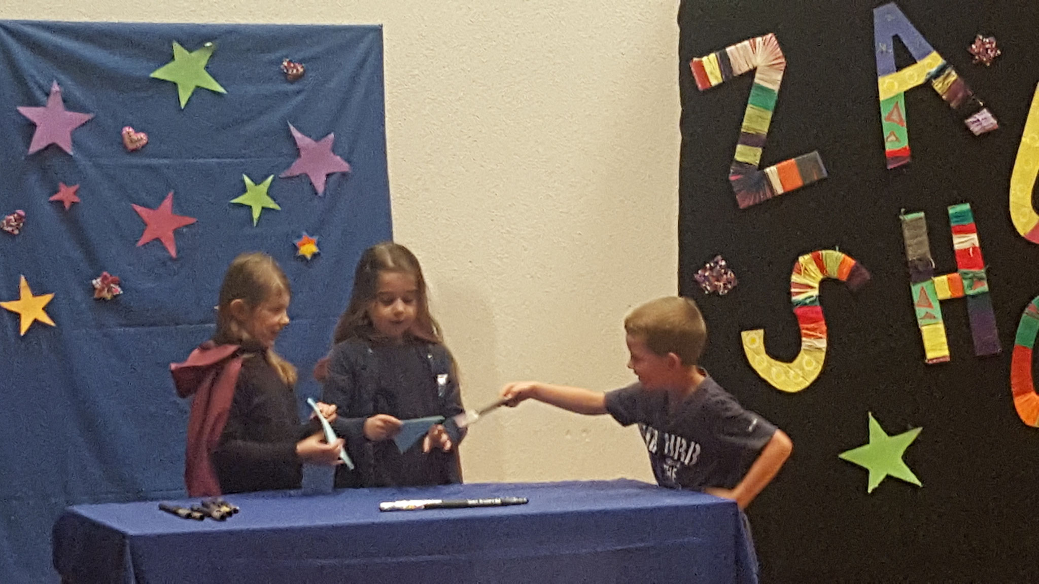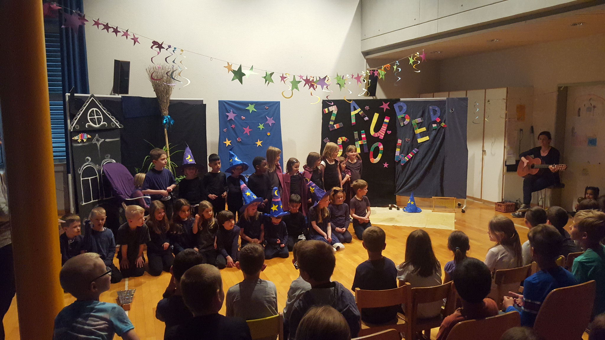 Den Rahmen für die Zaubershow legte die Geschichte um Zilly und Zingaro, welche die Kindergartenkinder über das ganze Schuljahr begleiteten.