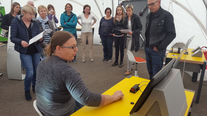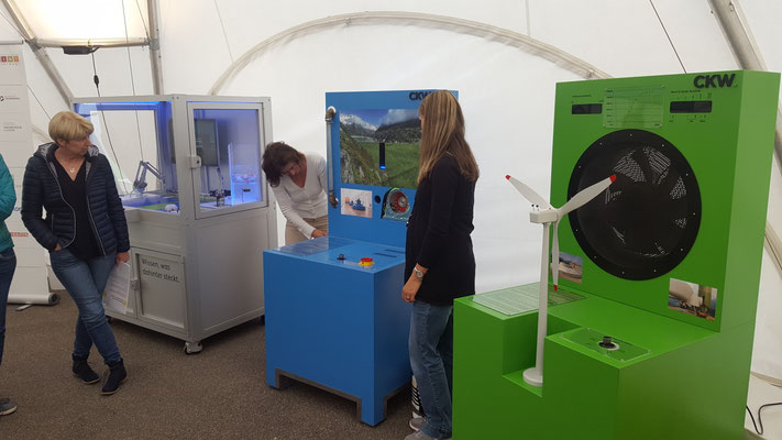 Nach dem Unterricht am Nachmittag gab es für alle Lehrpersonen eine Einführung ins MINT-Zelt. Dabei durften die Lehrpersonen die einzelnen Exponate ausprobieren und sich gegenseitig erklären. Michael Flury gab wertvolle Hinweise, Hintergrundinformationen und Tipps zur Organisation im Zelt. Die Lehrpersonen bereiteten danach ihrem Besuch mit der Klasse im Zelt vor.