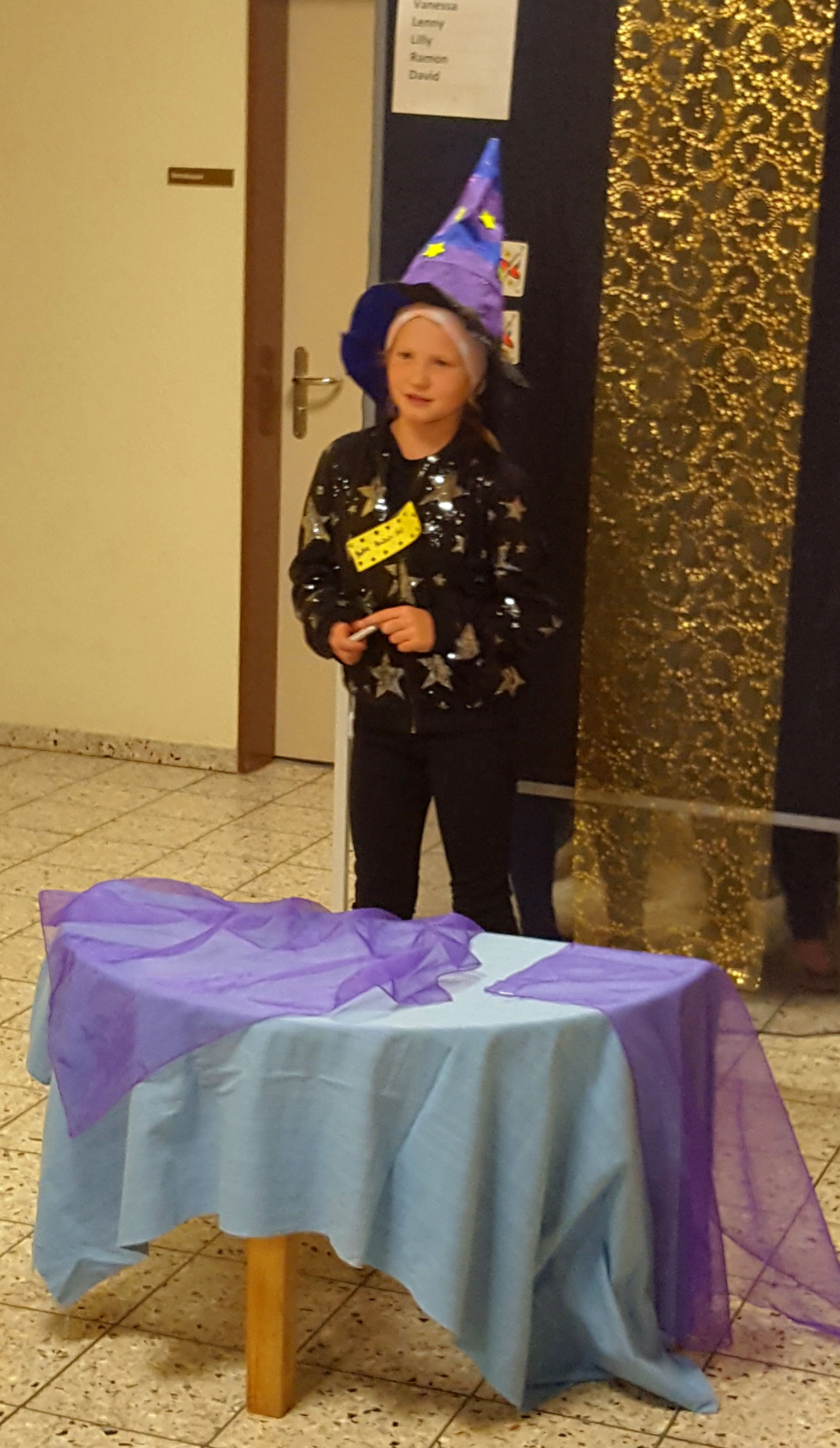 Der Kindergarten und die 1./2. Klasse Geiss verzauberte am 14. Juni 2018 die Zuschauerinnen und Zuschauer. Während Wochen übten die Kinder in den Klassen immer wieder einzelne Zaubertricks ein. Mit der Rahmengeschichte rund um das Klassenthema Zilly und Zingaro, Liedern und einem ersten Zaubertrick startete die Zaubershow. Zilly hatte Zahnweh und heute war doch die Zaubershow. Der Zahnarzt konnte ihr leider nicht helfen, so mussten ihre Lehrlinge die Zaubershow übernehmen. Die zahlreichen Zuschauerinnen und Zuschauer verteilten sich an vier verschiedene Orte, wo die Lehrlinge ihre Zaubertricks vorführten. Immer wieder waren AH’s, OH’s und Applaus zu hören. Die Besucherinnen und Besucher waren verblüfft, verwirrt, irritiert und angenehm überrascht. Die Schülerinnen und Schüler zeigten ihre Zaubertricks gekonnt und mit viel Spannung. Nach einem Wechsel trafen sich alle wieder in der Mehrzweckhalle für das Finale mit einem Lied. Herzlichen Glückwunsch, nun seid ihr alle grosse Magier.