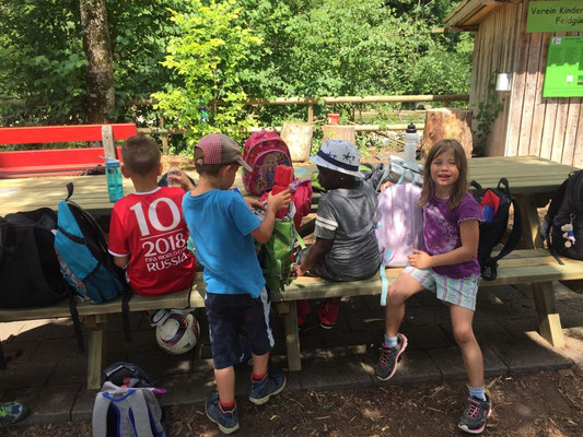 Schüler nach der Wanderung bevor es wieder auf dem Heimweg ging.