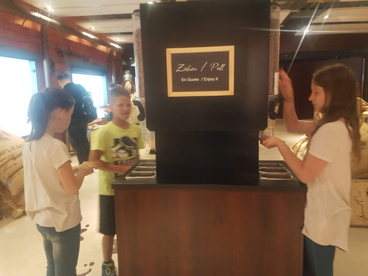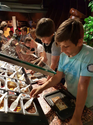 Die Schulreise der 5./6. Klasse Geiss führte die Schülerinnen und Schüler bei angenehmen Temperaturen der Reuss entlang ins Chocodromo Root der aeschbach chocolatier. Dort erlebten sie die Reise der Kakaobohne zur Schokolade, durften sich mit Schokolade den Bauch vollschlagen, dem Esel Goldstücke entlocken und selber ihre eigene Tafel Schokolade kreieren. Hoffen wir mal, dass es ohne Bauchweh zurück nach Geiss ging.