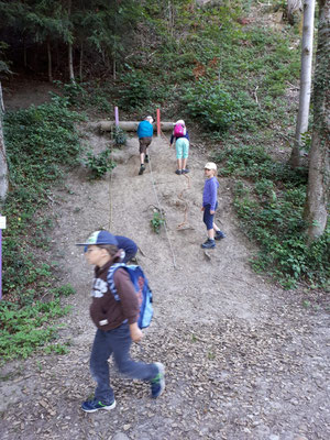 Die Kinder kamen am Hexenhäuschen, Hexengarten, der Waldrutsche, dem Barfussweg, der Kugelibahn und dem Spielplatz mit Feuerstelle vorbei. Die war ein passender Abschluss zu ihrem Jahresthema Lilly und Zingaro.