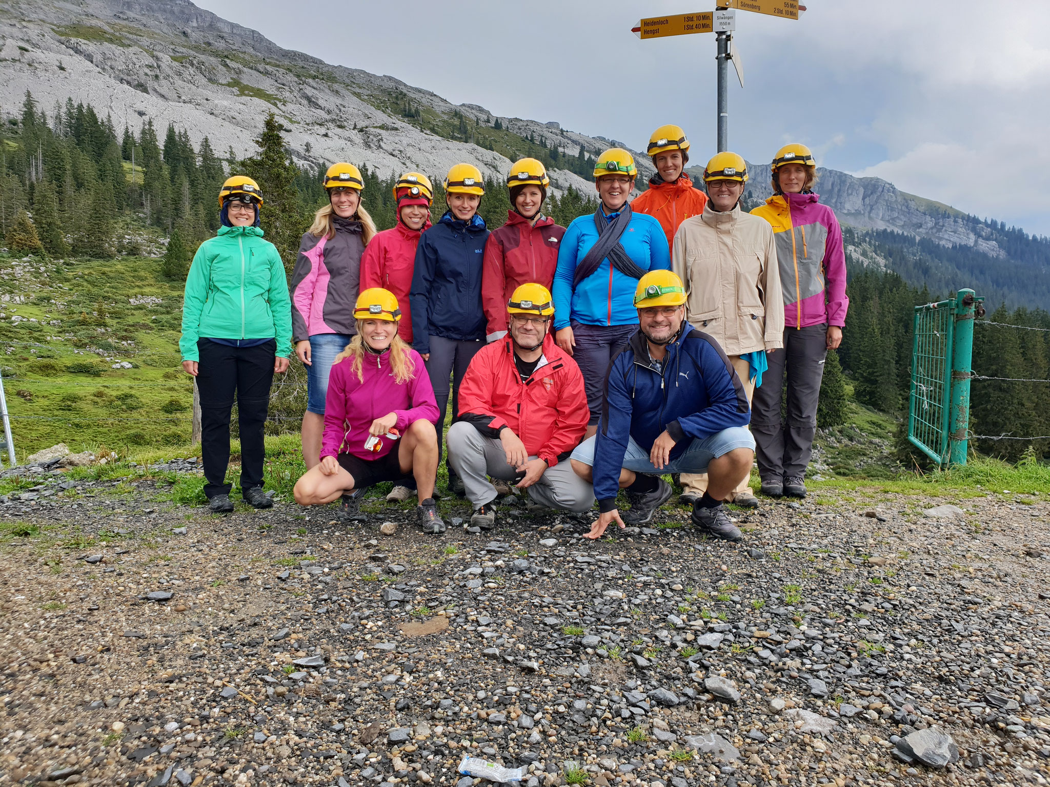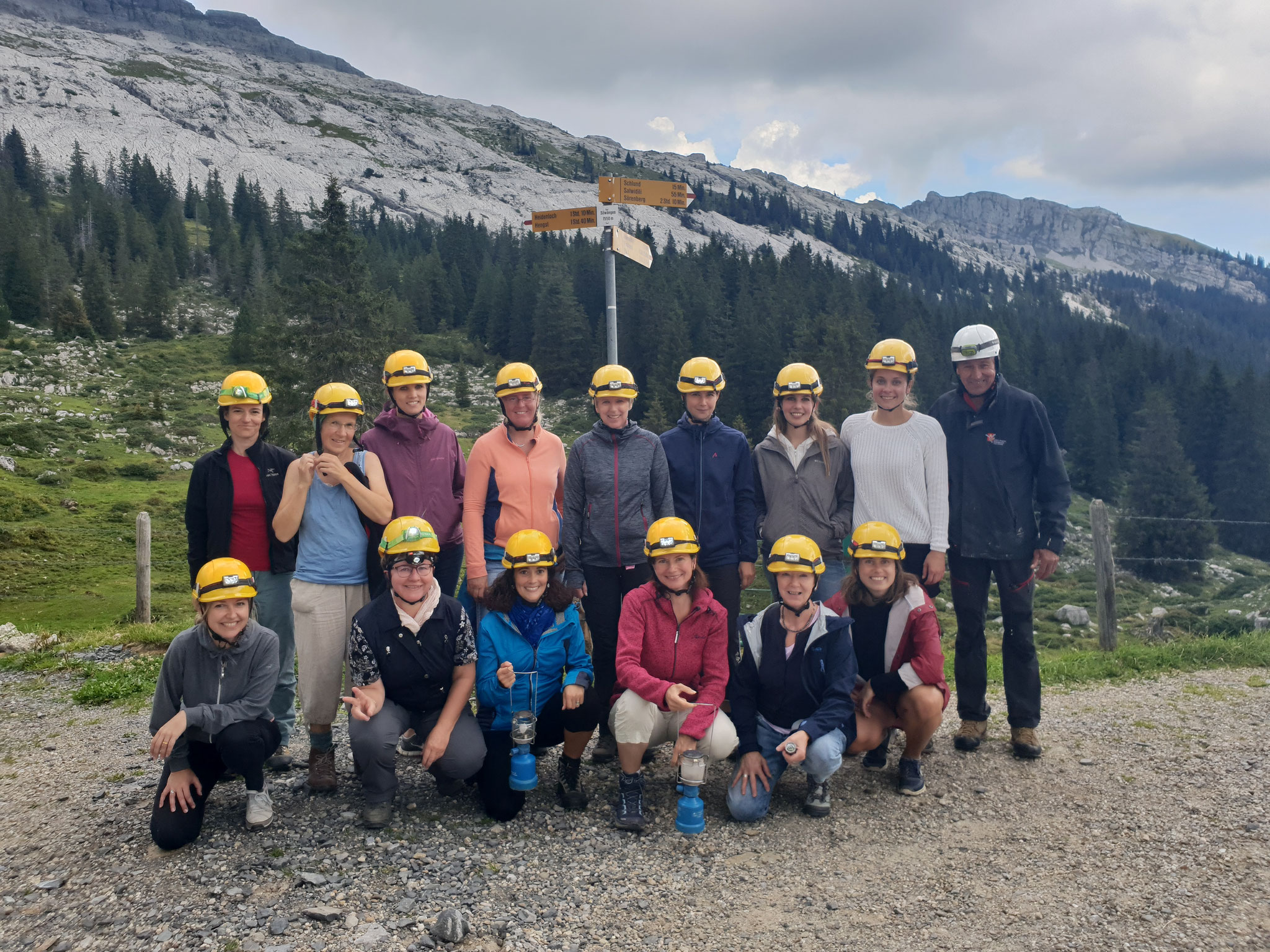 In Wagliseiboden hüpften die Lehrerinnen und Lehrer zur Alp Silwängen, wo sie von Pius Schnider bereits erwartet wurden. Mit Helm und Lampe ausgerüstet mussten sich die Höhlenbesucher zuerst einen Stollen herabsteigen, bevor sie in einer der ältesten Tropfsteinhöhlen der Schweiz den Erklärungen von Pius folgen konnten. Die Suche nach dem Frosch erwies sich als nicht so einfach, denn die Augen waren eher bei den Stalagtiten und Stalagniten sowie der Höhlenmilch und den vielen Löchern. Im hintersten Bereich der Höhle löschte die Gruppe das Licht und lauschte den Geräuschen. Leider war auch hier kein Gequake zu hören. So jodelte Pius oder der Schulleiter sang, um den schönen Klang in der Höhle zum Vorschein zu bringen. Einen Höhlenbewohner konnte man dann doch noch im Wasser entdecken, leider war es kein Frosch.