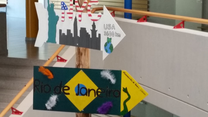 Die Resultate lassen sich sehen und schmücken nun den Eingangsbereich des Sekundarschulhauses. Da muss das Fröschli nun mächtig weit hüpfen, um all diese Orte zu besuchen!