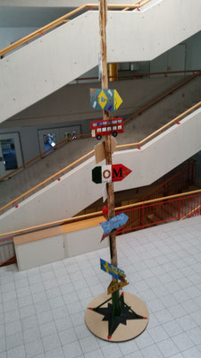 Aus 13 Städten wurde jeder Gruppe eine Stadt zugelost. Der Auftrag lautete, zu dieser Stadt ein Hinweisschild zu gestalten. Schliesslich soll das Schild in die Richtung zeigen, in welcher die Stadt tatsächlich liegt.