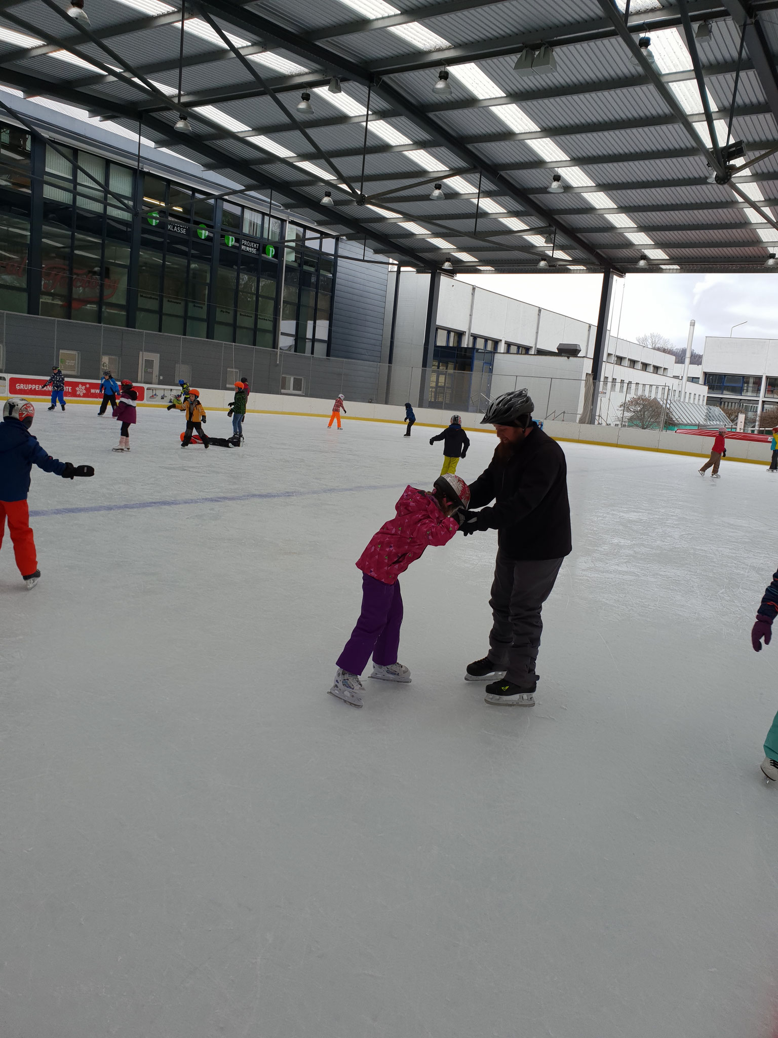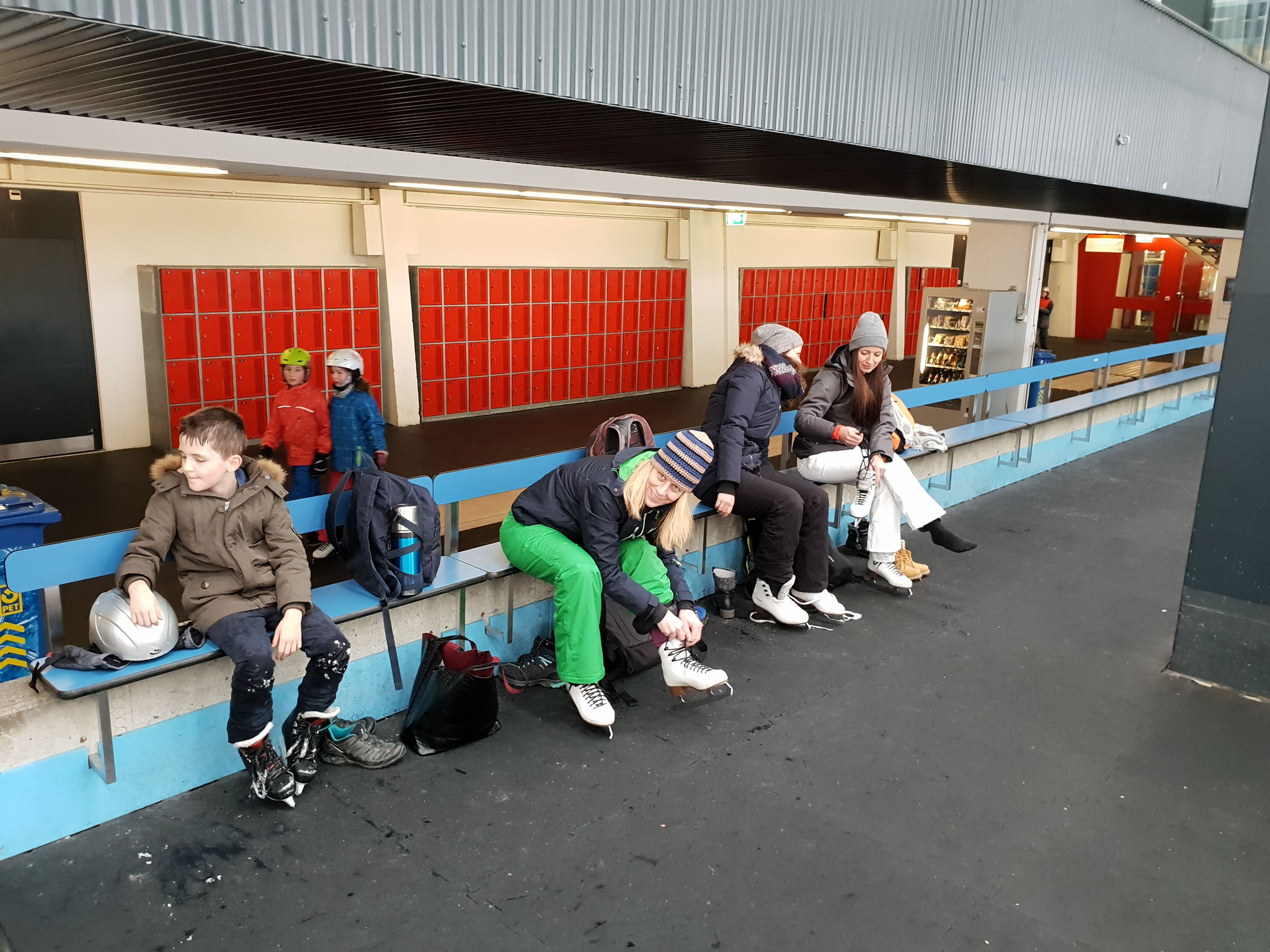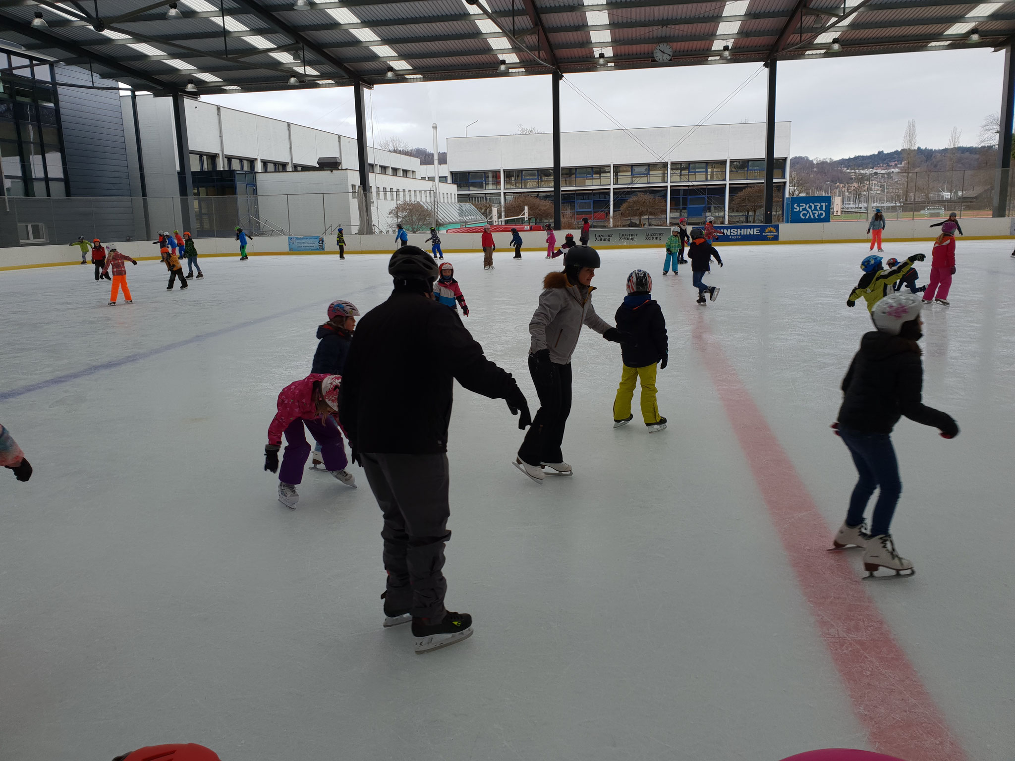 Im Aussenbereich lernten die Kinder das Schlittschuhlaufen, spielten Fangis, rutschten oder machten ein Wettrennen. Alle konnten in kurzer Zeit grosse Fortschritte erzielen. Nach dem Mittagessen aus dem Rucksack fehlte die Aufmerksamkeit, so dass es einige Stürze gab, welche mit Wundsalbe behandelt wurden. Die Zeit verging viel zu schnell. Vielleicht bleibt einigen noch in Erinnerung, dass sie im Bahnhof Luzern doch einige Rolltreppen hoch und runterfuhren.