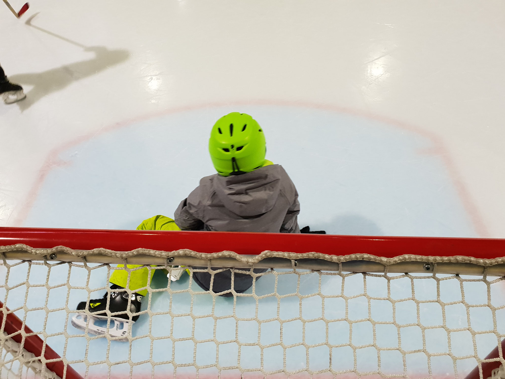 In der Halle spielten die Schülerinnen und Schüler Eishockey. War gar nicht so einfach den Buck zu kriegen, ohne selber umzufallen.