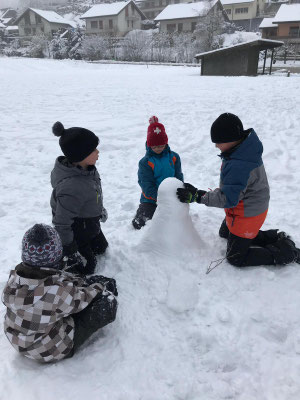 In Menznau versuchten sich die 3. Klasse zudem an Schneeskulpturen.