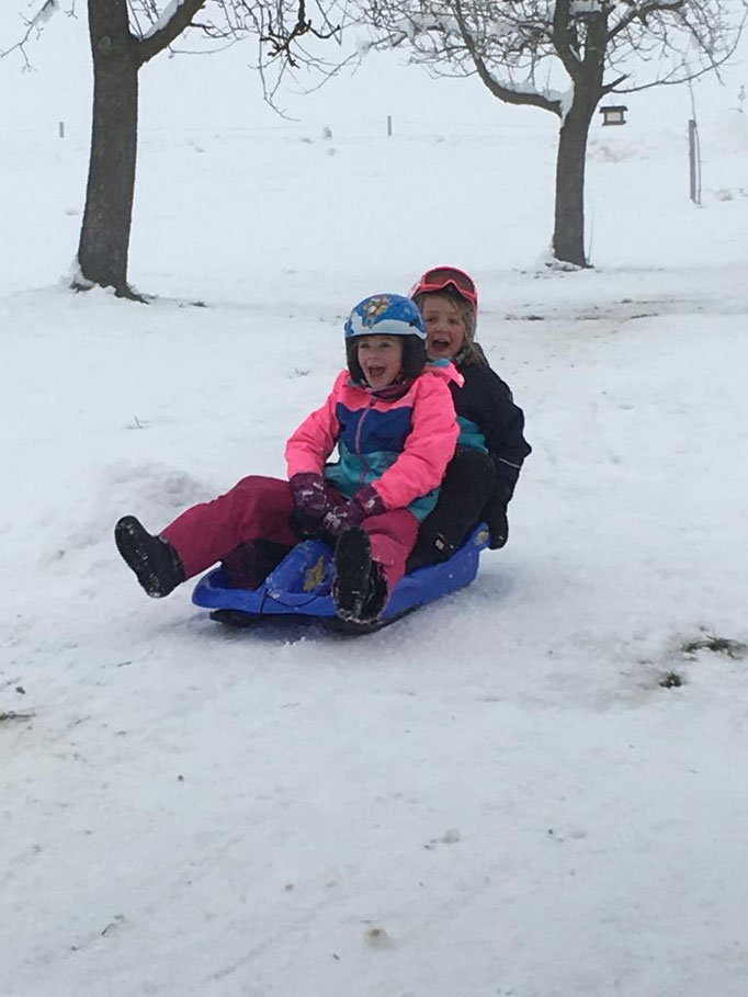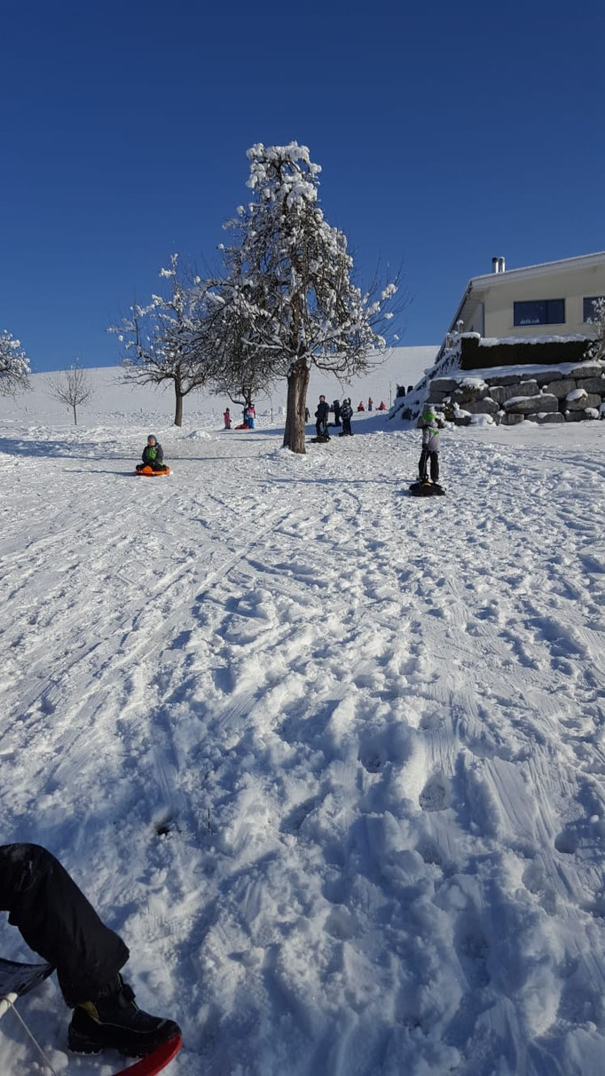 Der Schneefall vom Wochenende brachte eine weisse Pracht. Einige Klassen nutzten die Gelegenheit den Unterricht für einmal mit dem Schlitten nach draussen zu verlegen.