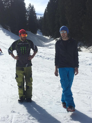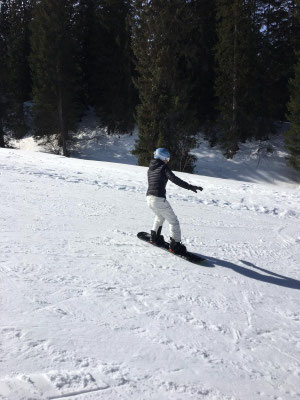 Am Donnerstag stand ein weiterer Höhepunkt auf dem Programm: Im Skigebiet Hoch-Ybrig konnten nun auch diejenigen Schülerinnen und Schüler, welche am Vortag das Alternativprogramm gewählt hatten, ein neues Gebiet erkunden und die perfekten Pistenverhältnisse geniessen. 18 TeilnehmerInnen hatten sich für die ersten Gehversuche auf dem Snowboard angemeldet. Jeweils in 4er-Gruppen konnten sich die Mutigen in die Kunst des Snowboardens einführen lassen. Unglaublich, wie talentiert diese Anfänger waren! Die meisten konnten nach einer Stunde bereits beide Kurven fahren und selbstständig auf den "Händschefrässer-Lift". Die Schrittzähler der vier Leiter (Yannic, Helena, Tobi und Jonathan) zeigten am Ende des Tages Schrittrekorde an - aber das hat sich definitiv gelohnt.