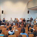 Die Musikschule Hergiswil-Menznau besuchte die 1.-3. Klasse in Menznau. Im Singsaal der Sekundarschule präsentierten die Musikschullehrpersonen ihre mitgebrachten Instrumente, spielten sie vor und improvisierten in verschiedensten Gruppierungen. Die Kinder beantworteten die gestellten Fragen aktiv und klatschten bei vielen Stücken im Takt mit. Sie waren von den Fähigkeiten der Musikschullehrpersonen begeistert. Sie verstanden es das Publikum in ihren Bann zu ziehen. Sogar der Schulleiter Zyklus I und II baute der Gitarrenlehrer spontan gesanglich mit dem Lied Zündhölzli in den Ablauf ein.