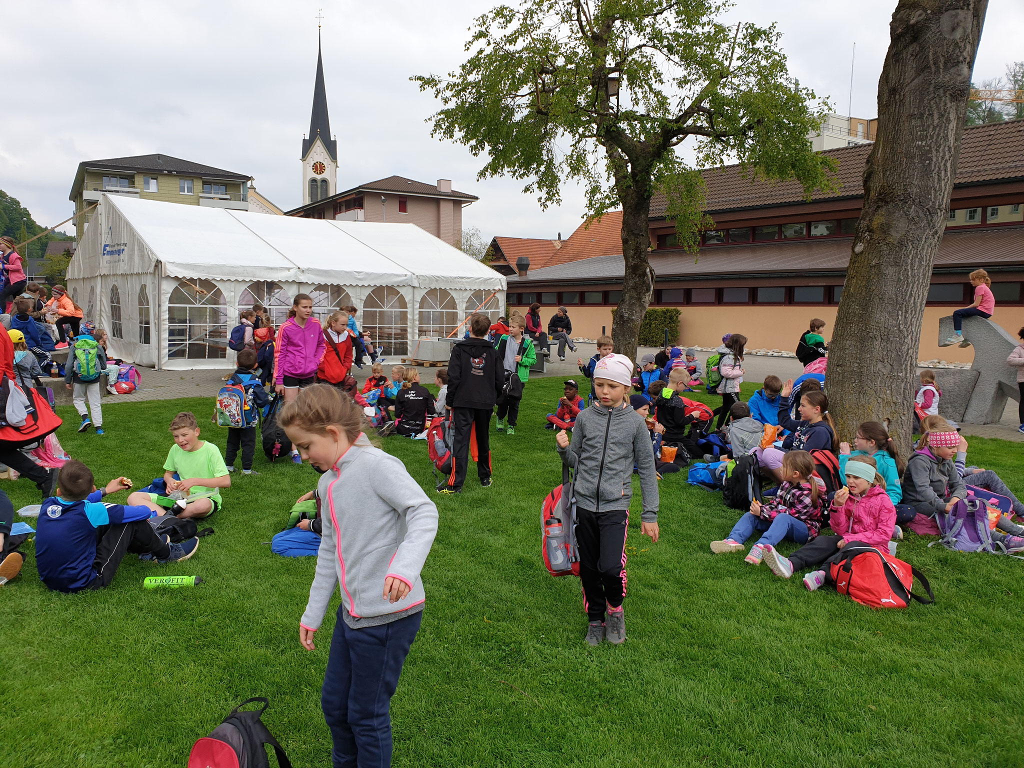Die Gruppenchefs, dies waren die Schülerinnen und Schüler der 6. Klasse, führten ihre Gruppe gekonnt und pünktlich zu den einzelnen Posten. Bei den einzelnen Wettkampfposten halfen die grösseren den kleineren, es war ein schönes Miteinander. Den Kindern der 6. Klasse gebührt ein grosser Dank. Das habt ihr super gemacht.