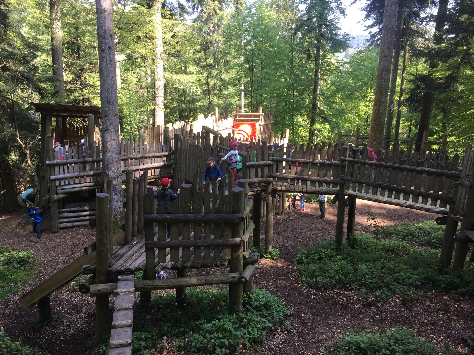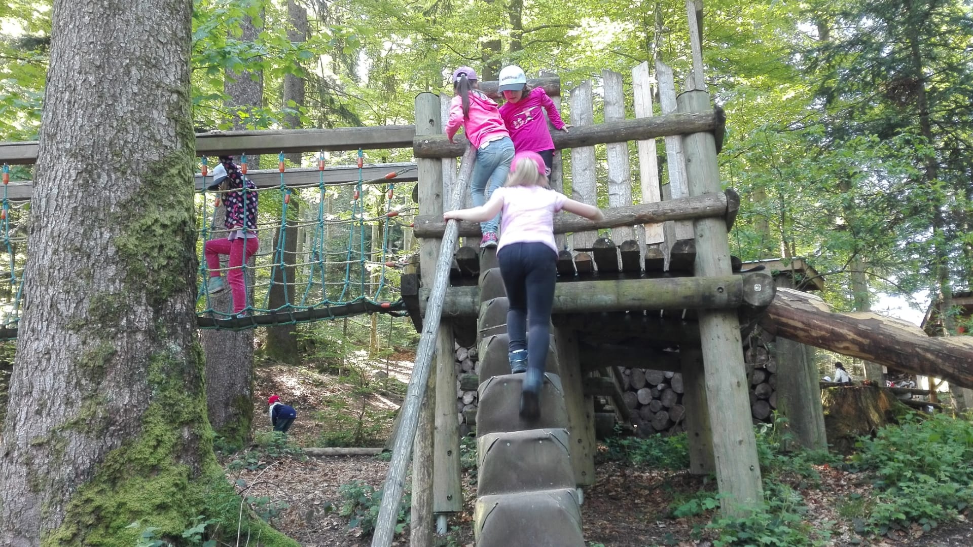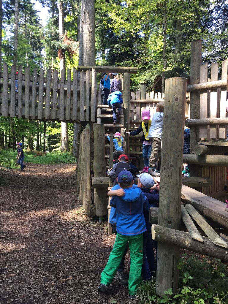 Der Kindergarten 1 und 2 reiste zusammen mit Bahn und Postauto ins Zyberliland. Nach einem Fussmarsch vergnügten sich die Kinder beim Spielen auf der Talherrenburg. Auf dem Feuer brutzelten am Mittag die Würste. Die Kinder hätten sich noch stundenlang vergnügen können. Leider musste zu früh die Rückreise wieder angetreten werden.