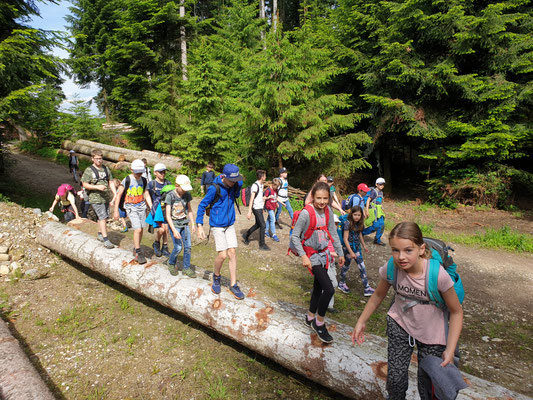 Die 3.-6. Klasse nahm nach Jungholz den Weg nach Tambach, durch den Soppenseewald, um den Soppensee, nach Seehus zum Galgenberg und schliesslich zur Brätlistelle.
