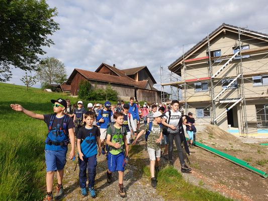 Danach trennte sich die Gruppe, da es zwei Routen gab. Eine Route für die Kleinerer und eine Längere für die Grösseren. Für die 1./2. Klasse und einen Teil der 3. Klasse verlief der Weg über Blochwil, Jungholz, Neuhof, Oberwaldmatt, Unterwaldmatt, Hügihof zur Brätlistelle.