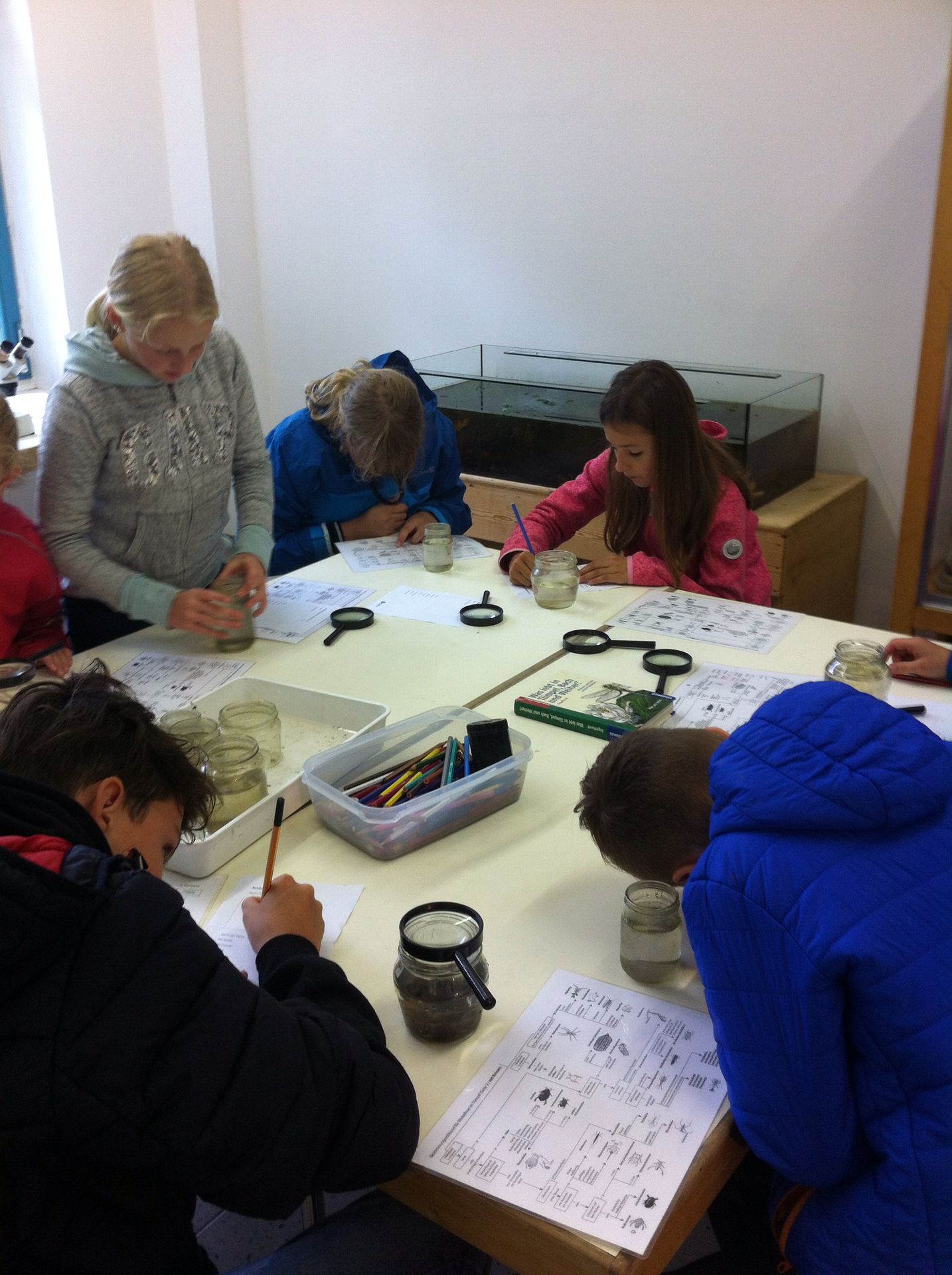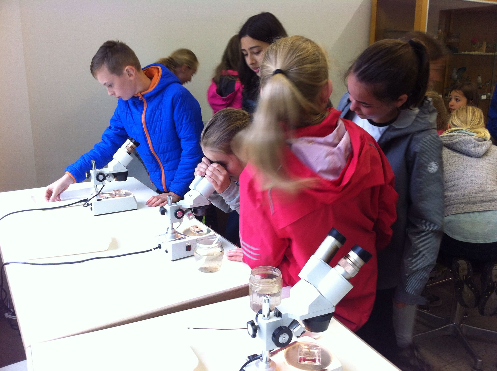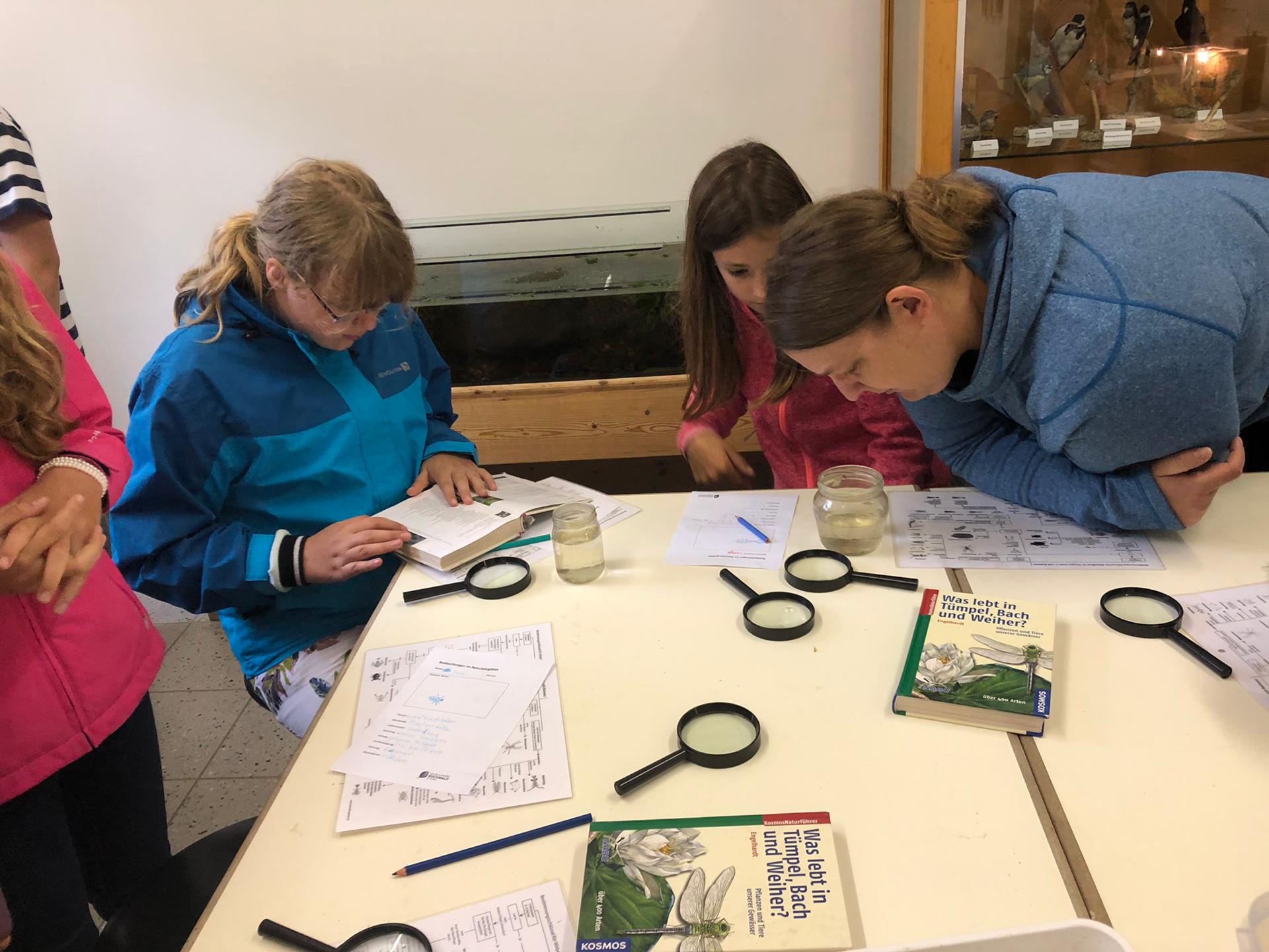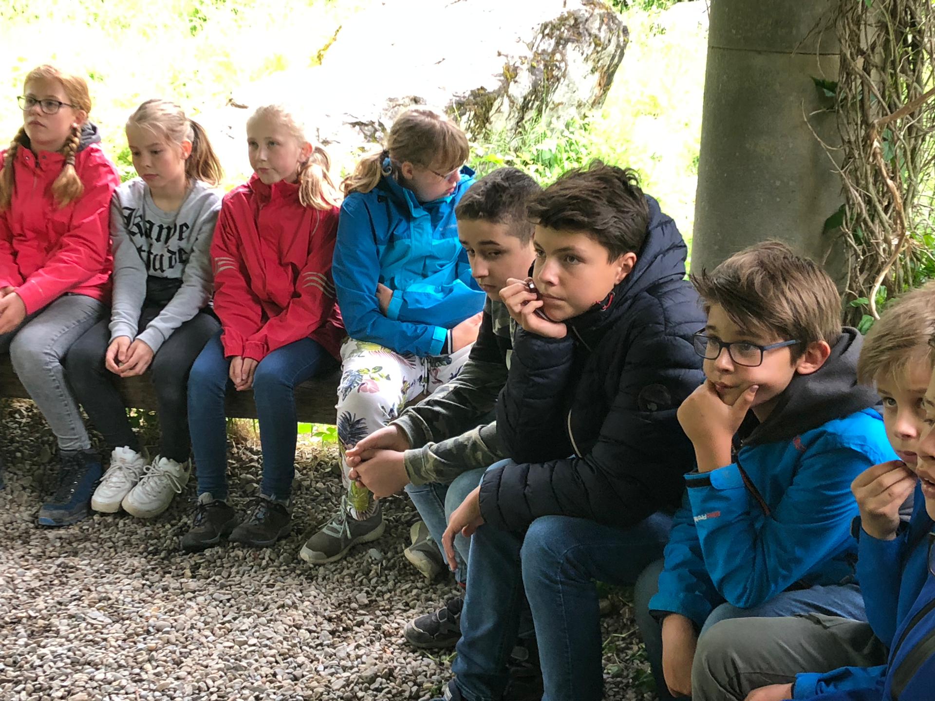Die 5. Klasse reiste bei kühlen Temperaturen zum Naturlehrgebiet Buchwald. Der Lebensraum Teich gab für die Schülerinnen und Schüler viel zu entdecken, beobachten und erforschen. Auf einem Rundgang entlang von Teichen, Tümpeln und Weihern tauchten sie ein in die Welt der Tiere und Pflanzen am und im Wasser. Dann kehrten sie zurück zum Turm, in dessen Umgebung das Fangen, Beobachten und Freilassen von Wassertieren unter Aufsicht erlaubt war. Natürlich durfte auch der Frosch nicht fehlen.