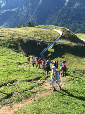 Von Menznau aus fuhr die 4. Klasse mit der Bahn nach Engelberg. Mit der Luftseilbahn durften die ersten Höhenmeter nach Ristis zurückgelegt werden. Dort wanderten die Schülerinnen und Schüler mit ihren Lehrpersonen bei stahlblauem Himmel Barfuss um den Härzlisee, vergnügten sich auf dem Spielplatz, im Wasser und im Sand. Nach dem Picknick am Mittag rasten die Kinder auf der Rodelbahn auf der kurvenreichen Strecke. Mit vielen Eindrücken machte sich die Klasse zurück nach Menznau.