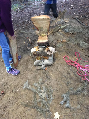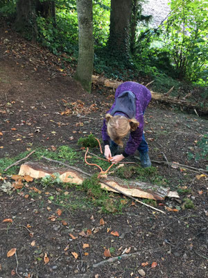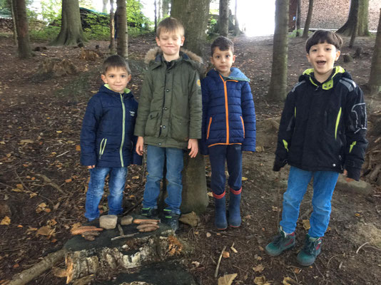 Mit unserem Herbstlied stimmten wir uns auf den Waldmorgen ein. Anschliessend kreierten die Kinder Kunstwerke aus Naturmaterialien. Dabei wurde mit Muskelkraft gearbeitet und auch das Auge zum Detail hat nicht gefehlt. Der Kreativität waren keine Grenzen gesetzt. Zum Abschluss konnten wir viele schöne Gebilde bestaunen.