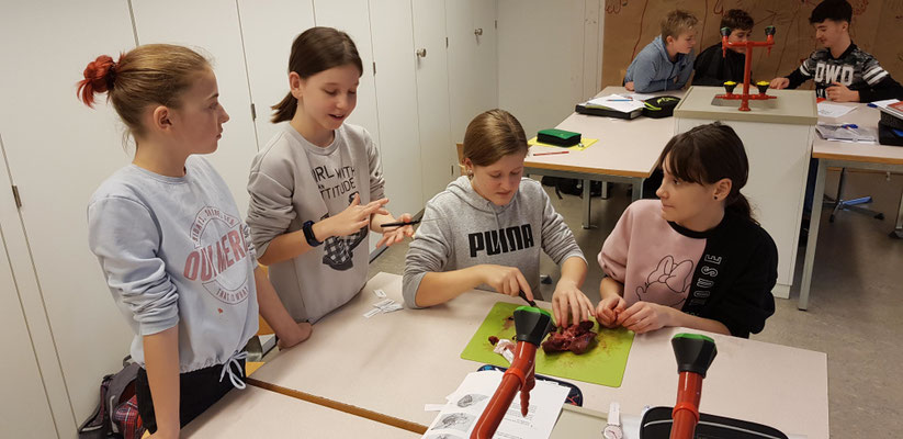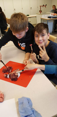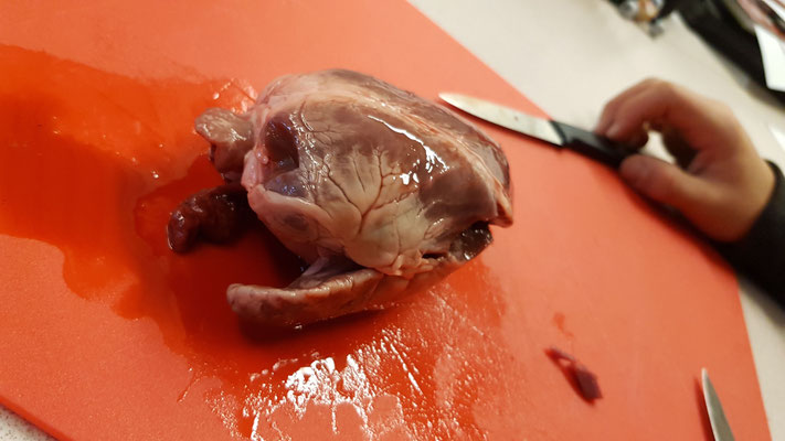 Als wäre das nicht genug, konnte dann in Gruppen ein Herz seziert werden und dabei die Abbildungen aus der Theorie mit der Realität vergleichen.
