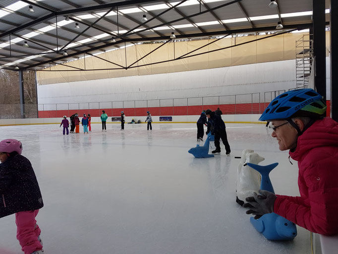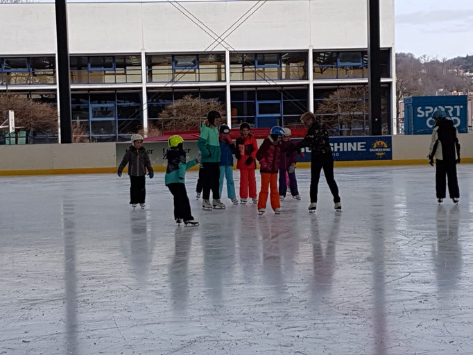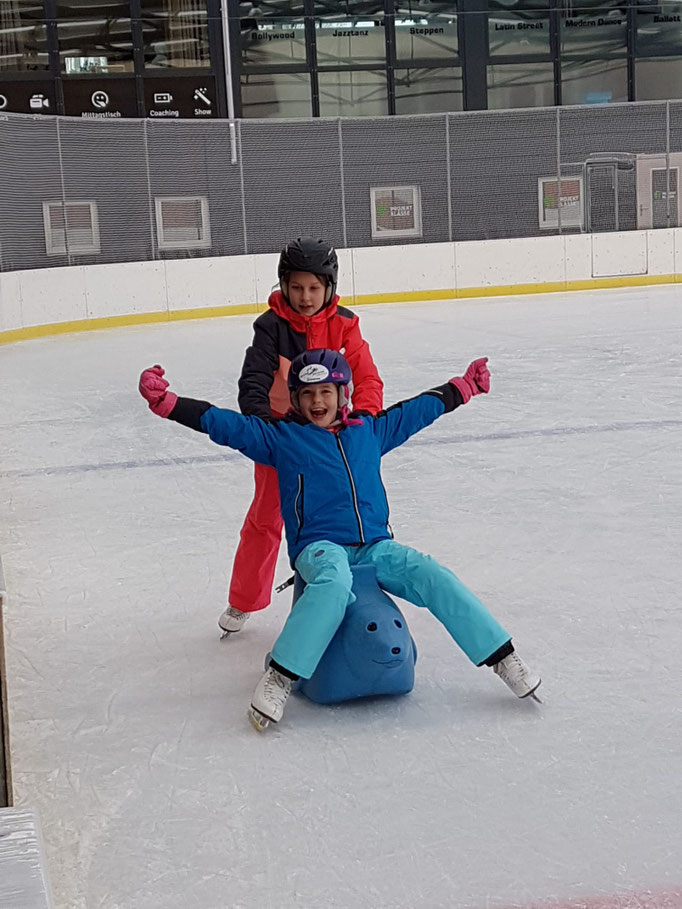 In der Eishalle Luzern durften sich die Kinder auf dem Eis austoben. Schlittschuhlaufen, Eishockey spielen oder mit den tierischen Schlittschuhlaufhilfen ein Wettrennen veranstalten. Glück hatte die Schlittschuhgruppe auch noch, gesponserte Getränke schmeckten lecker.