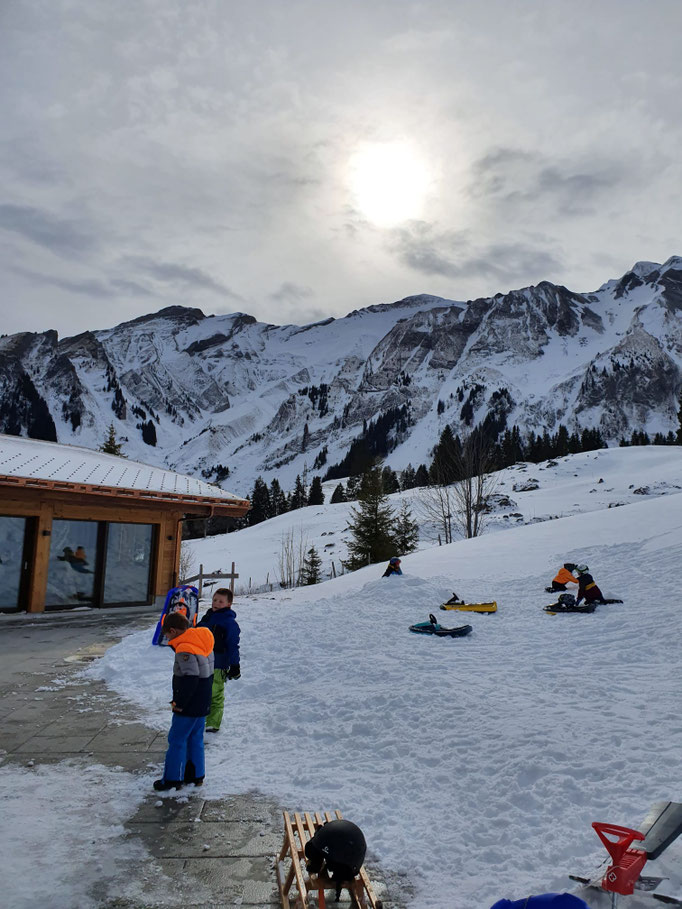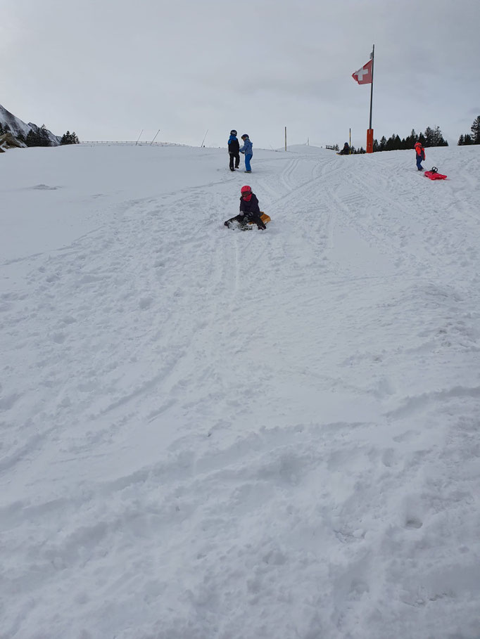 Mit dem Car gingen die Schlittler und Skifahrer ins Skigebiet Sörenberg, wo sie einen herrlichen Tag in Gruppen auf den Pisten verbrachten. Am Mittag verpflegten sie sich im Restaurant oder aus dem Rucksack. Ab 14.00 Uhr schneite es und kurz vor dem Nachhausegehen meldete sich der Regen. Dank dem Notfallzettel fanden alle den Weg wieder nach Hause.