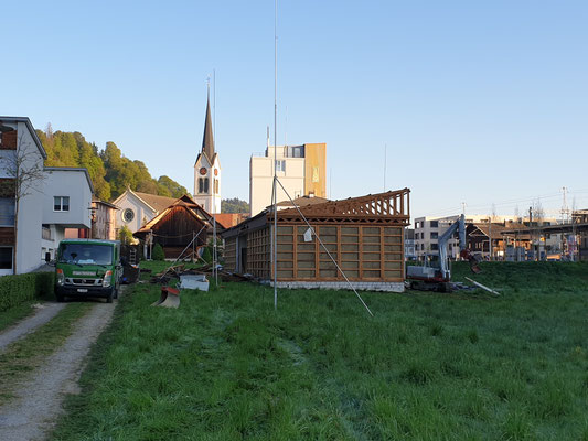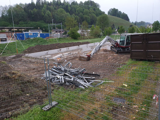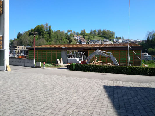 Der Schulpavillion zwischen Schulhaus und Bahnhof wird im Moment demontiert und abgerissen. Der Pavillon diente in früheren Zeiten als Schulraumerweiterung. Fachunterricht wie Werken fand darin statt. Der Pavillon diente in den letzten Jahren noch als Material- und Möbellager, sowie Entsorgungsstelle.