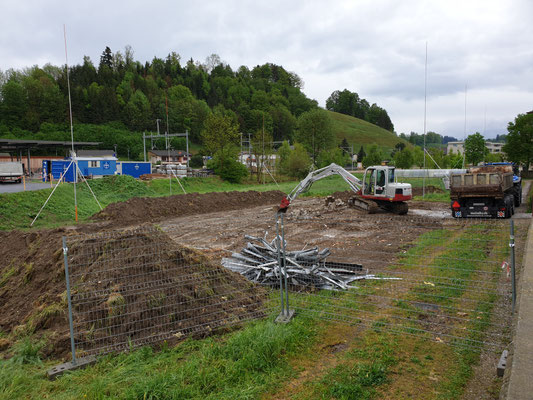 Der Abriss erfolgt nun, da auf dem Areal zwischen Schulhaus und Bahnhof die neuen Sportanlagen entstehen.
