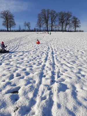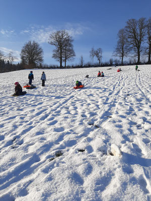 Bei tollen Schnee- und Wetterverhältnissen konnten die Schülerinnen und Schüler ihre Bobs am tollen Schneehang beim Bänihüsli testen. Die Bobs wurden netterweise von Doris Egli hin- und hertransportiert. So konnten die Kinder ohne Last den Weg zurücklegen.