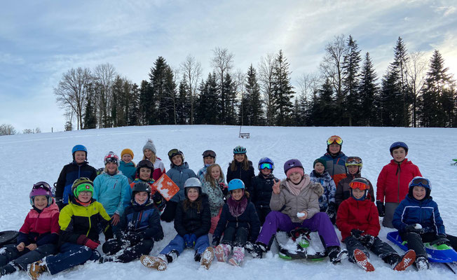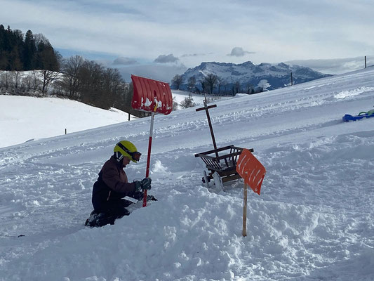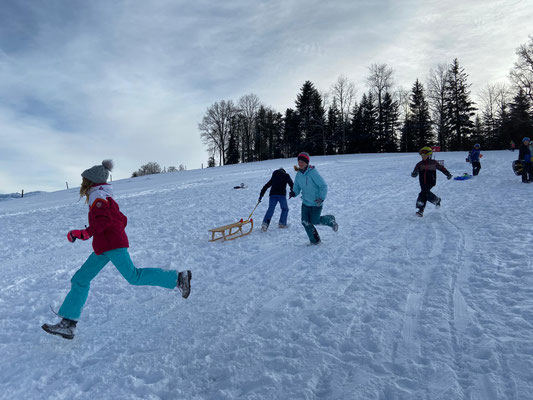 Die 5. Klasse Menznau vergnügte sich mit Schlitten und Schutzausrüstung in der Sonnhalde, die Basisstufe Geiss zwischen Jungholzstrasse und Menznauerstrasse. Die starken Kinder zogen gleich drei Schlitten miteinander hoch, wer braucht da denn noch einen Skilift.