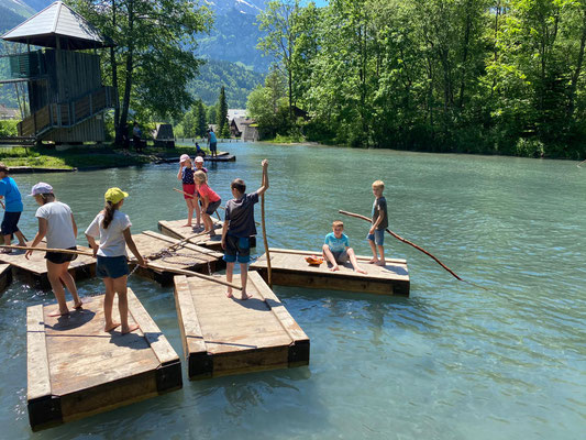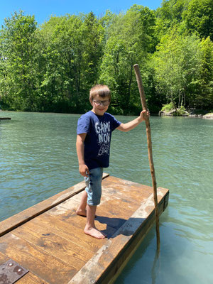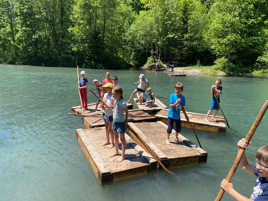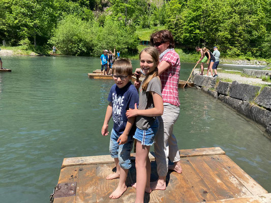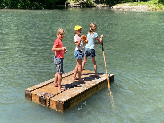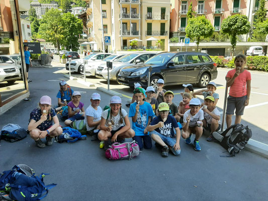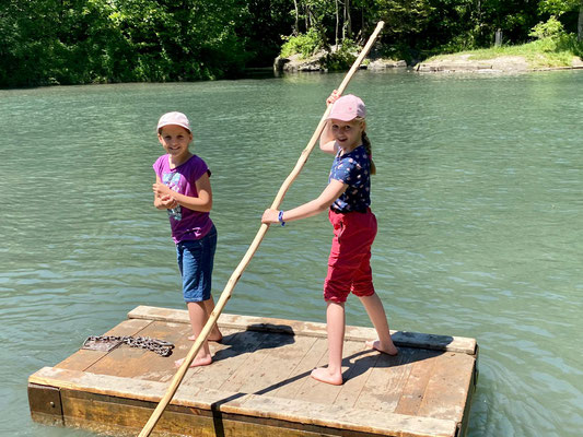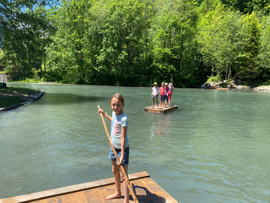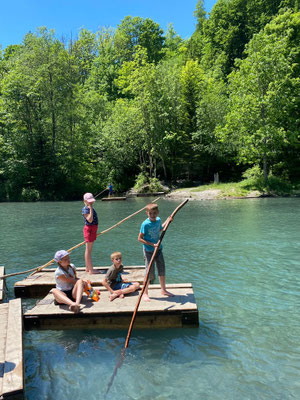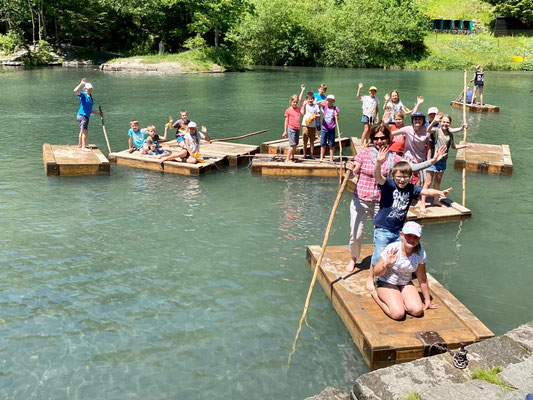 Hier konnten sich die Kinder nach Lust und Laune austoben, sei es auf den Spielgeräten oder auf den Flossen, die auf dem kalten Wasser schwammen. Die Zeit verging viel zu schnell und wir mussten wieder zurück zum Bahnhof laufen. Auf dem Weg konnten wir uns noch mit einem feinen Glace stärken, bevor es mit dem Zug zurück nach Menznau ging. Schön, dass wir dieses Jahr wieder unterwegs sein durften.