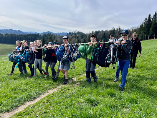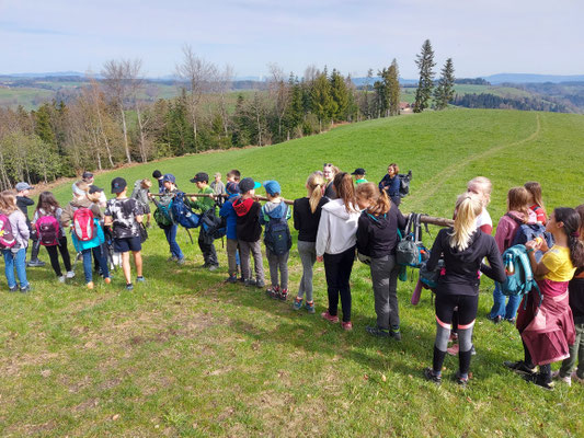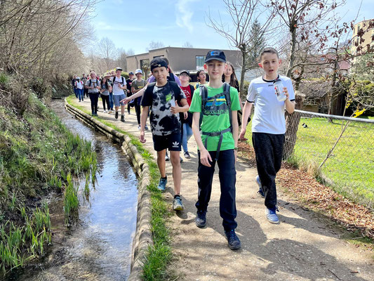 Schönes Wetter, fröhliche Kinder, verschieden lange Wege - was braucht es mehr für eine Frühlingswanderung mit dem ganzen Schulhaus?