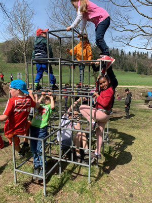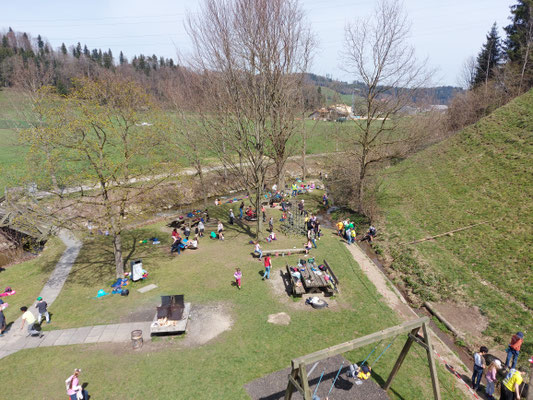Das Ziel war für alle Kinder auf dem Spielplatz Breiten in Willisau. Der Kindergarten wanderte von Hergiswil, die 1./2. Klasse von Willisau, die 3./4. Klasse von Gettnau und die 5./6. Klasse von Menzberg her. Es gab auf den Strecken einiges zu entdecken, zu erzählen und zu witzeln. Es gab auf der Strecke einige kleine Pausen, um sich zu stärken. Der Spielplatz Breiten war zu Mittagszeit nur so mit 167 Kinder übersäht. Neben dem Mittagessen mit Grilloption wurde gespielt, geklettert, gedreht, versteckt, das Wasser gestaut, Fangis gespielt und gesprochen. Die Aufzählung ist nicht abgeschlossen. Um 14.00 Uhr hiess es für die 3.-6. Klasse zu Fuss zum Bahnhof Willisau zu starten. 11 motivierte Kinder der 1./2. Klasse wollten mit der Schulleitung zum Bahnhof Willisau laufen. Der restlichen Schülerinnen und Schüler starteten etwas später, liefen zur Bushaltestelle und fuhren mit dem Bus zum Bahnhof. Wie in kürzester Zeit die Kinder in die Bahn stiegen und alle in Menznau wieder ausstiegen, kann nicht beantwortet werden. Jedenfalls hat es geklappt.