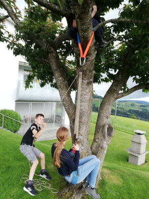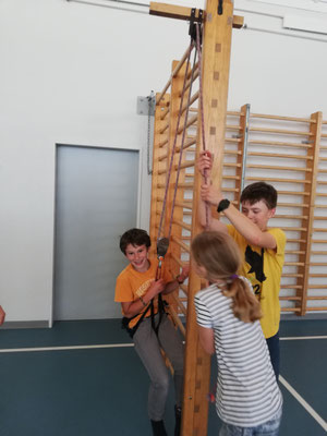 Die Schülerinnen und Schüler vom Menzberg machen erste Erfahrungen mit dem Hebelgesetz, der Umlenkrolle, der losen Rolle und dem Flaschenzug. Es macht Spass, die Wirkung der Kräfte zu beobachten. Und es löst Erstaunen aus!
