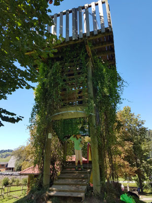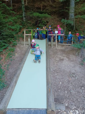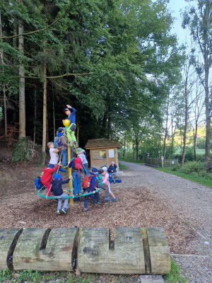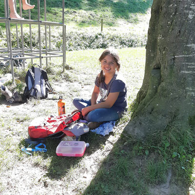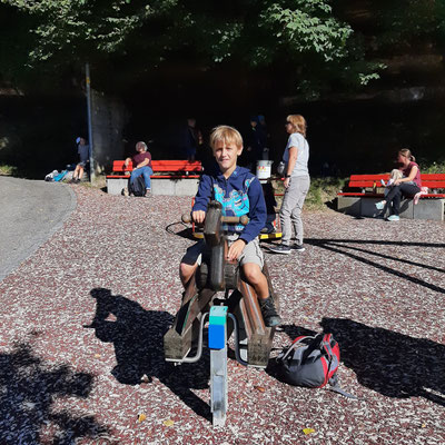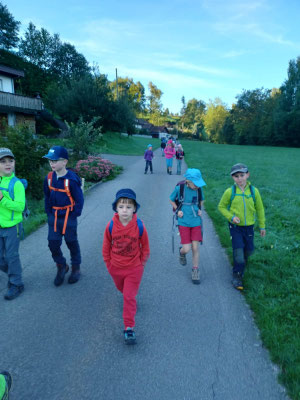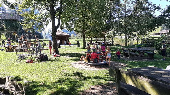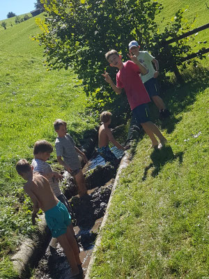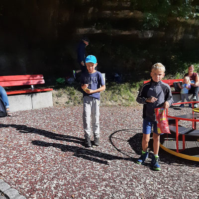 Ganz nach dem Motto «…holt mich hier raus!», machte sich die Schule Geiss bei Sonne und mit guter Laune auf einen 1,2,3 oder 4-stündigen Weg. Die Älteren gingen von Geiss vorbei an der Jagdhütte, der Weiherlandschaft Ostergau bis zum Hirschpark in Willisau, wo sie dann auf dem Spielplatz ihr wohlverdientes «Znüni» genossen, die Rehe streichelten oder sich auf dem Drehkarussell drehten, bis ihnen schwindlig wurde. Frisch gestärkt ging es runter ins Städtchen, der Wigger entlang bis zum Spielplatz Breiten. Da angekommen trafen sie auf die Jüngeren, die sich am Morgen entlang dem Chrüterhäxli Lilli Gwonderwäg vergnügten hatten. Das ganze Schulhaus genoss gemeinsame Zeit beim Bräteln, Baden, Fluss stauen, Tiere beobachten, Schwatzen und Spielen, bis es für einige unermüdliche Kinder zu Fuss nach Willisau zurück ging. Etwas müde, nicht mehr ganz so sauber aber mit einem Lächeln im Gesicht, trafen alle wohlbehalten in Menznau ein, wo sie von ihren Eltern wieder in Empfang genommen wurden.