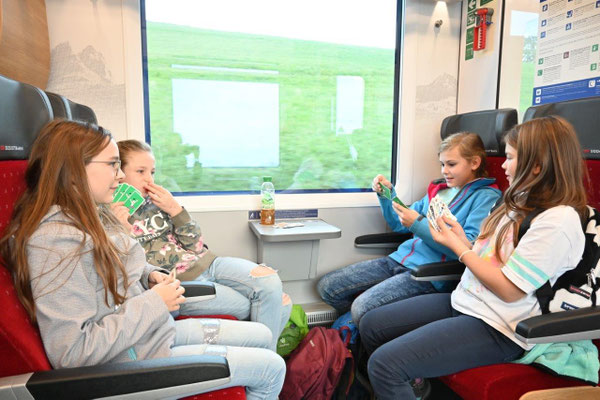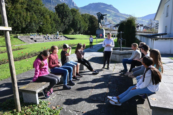 Am 27. Oktober reiste die 3.-6. Klasse Menznau für einen Besuch des Bundesbriefmuseums nach Schwyz. Mit Bus, Zug und noch einmal Bus dauerte die Anreise über zwei Stunden, aber die Schülerinnen und Schüler wussten sich unterwegs gut zu beschäftigen. In Schwyz angekommen blieb Zeit für eine kurze Bewegunspause, bevor die Führung begann und die Kinder während einer Stunde den Erzählungen über die Anfänge der Schweiz zuhören durften. Die Museumsführerin schaffte es, die komplexen Themen so altersgerecht zu erzählen, dass auch die jüngeren Schülerinnen und Schüler ihr ganz gebannt folgten und diesen Ausflug noch lange in Erinnerung behalten dürften. Nach Mittagessen und freiem Spielen führte Klassenlehrerin Judith Lustenberger die Kinder durch den Ort Schwyz mit den vielen verschiedenen geschichtsträchtigen Gebäuden, bevor sich die Schar wieder auf den langen Heimweg machte.