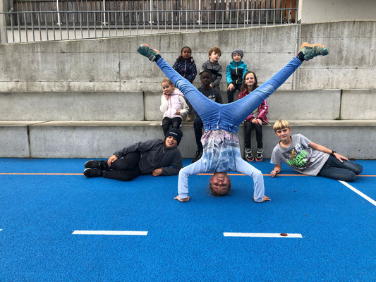 Zum Abschluss traten die altersdurchmischten Gruppen in der Familienstafette an. Frau Frank erklärte den Lernenden der 6. Klasse jeweils die Fortbewegungsart. Diese informierten ihre Familien. Auf das Startzeichen rasten die Kinder los und gaben ihr Bestes. Da der Spass im Vordergrund stand, gewannen alle Schulfamilien.