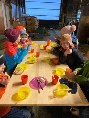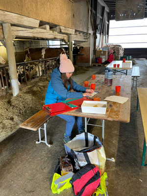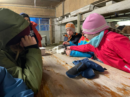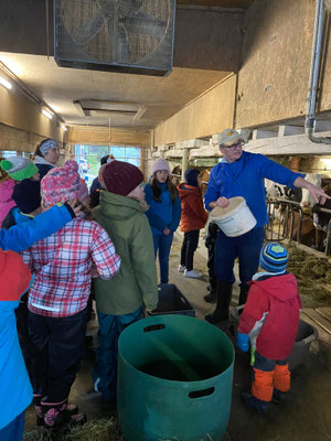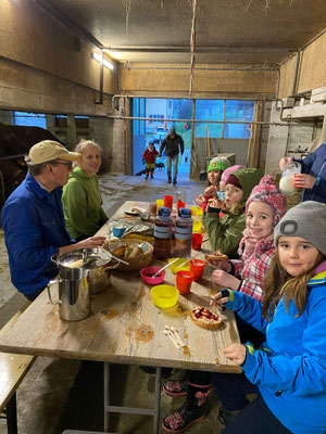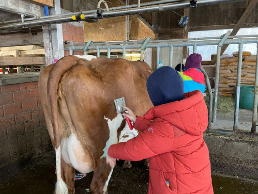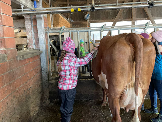Am Donnerstag, 9. März durfte die 2./3. Klasse als Abschluss des Themas „Wie kommt die Milch ins Glas?“ den Bauernhof von Familie Emmenegger in Geiss besuchen. Nun konnten die Kinder die besprochenen Themen wie das Melken oder das Futter der Kühe auf dem Bauernhof direkt beobachten und erfahren. Einen spannenden Morgen mit vielen Erlebnissen, neuen Entdeckungen und einem feinen Frühstück im Stall durften die Kinder erleben. Ein herzliches Dankeschön an die Familie Emmenegger für den tollen Einblick in ihren Bauernhofalltag!