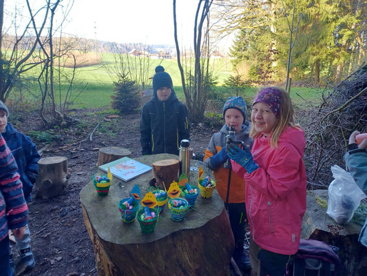 Wir haben doch noch schönes Wetter erhalten und konnten so einen tollen osterabschluss mit einer Geschichte, Infos über das Leben eines Hasen, Osternest verstecken und suchen und viel Spielen im Freien geniessen. Sogar Pinocchio (made by Andrin) hat es noch rechtzeitig zu uns geschafft.