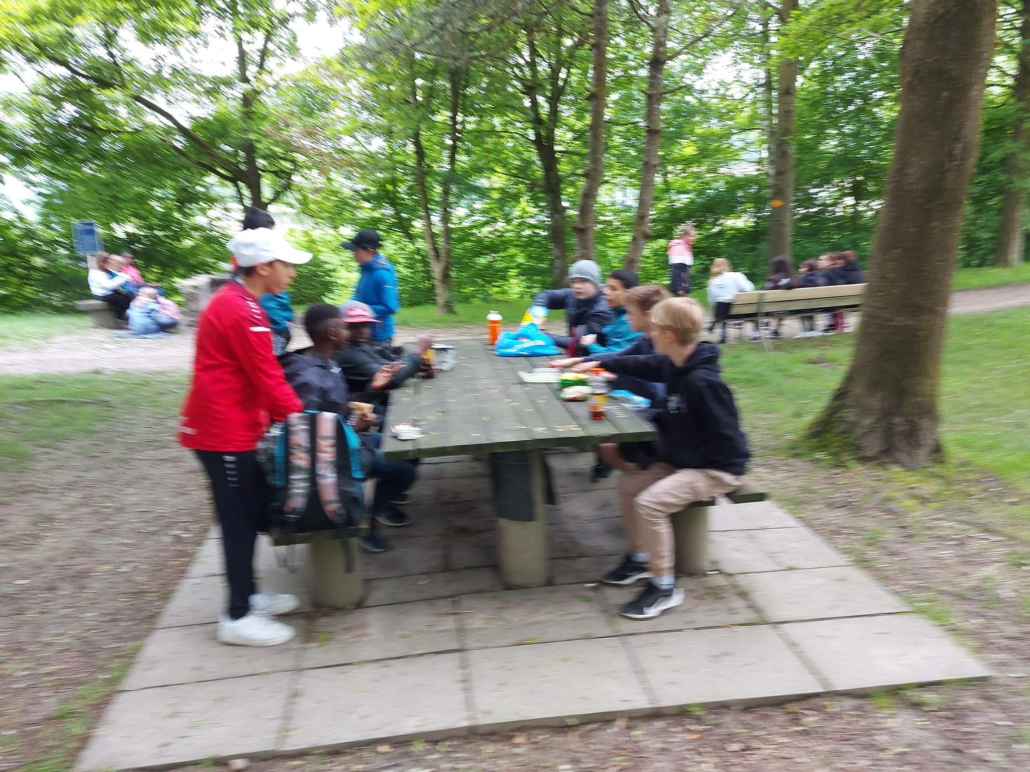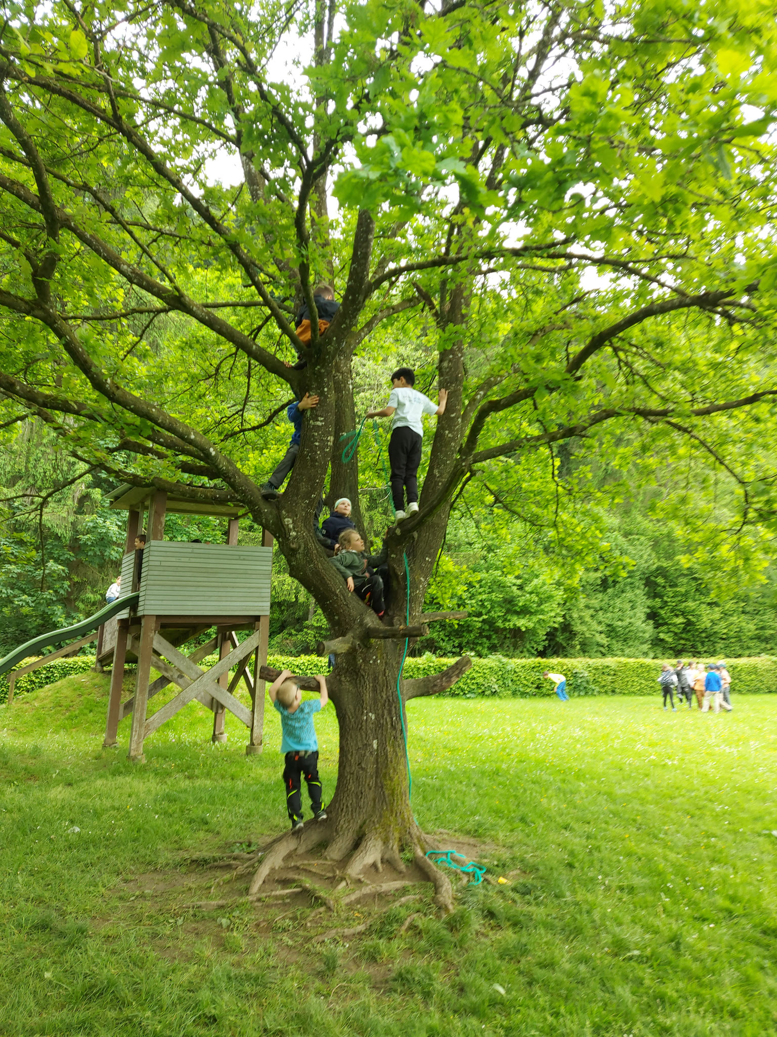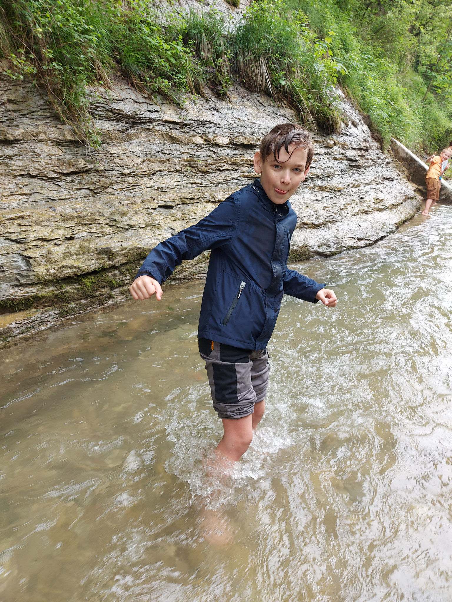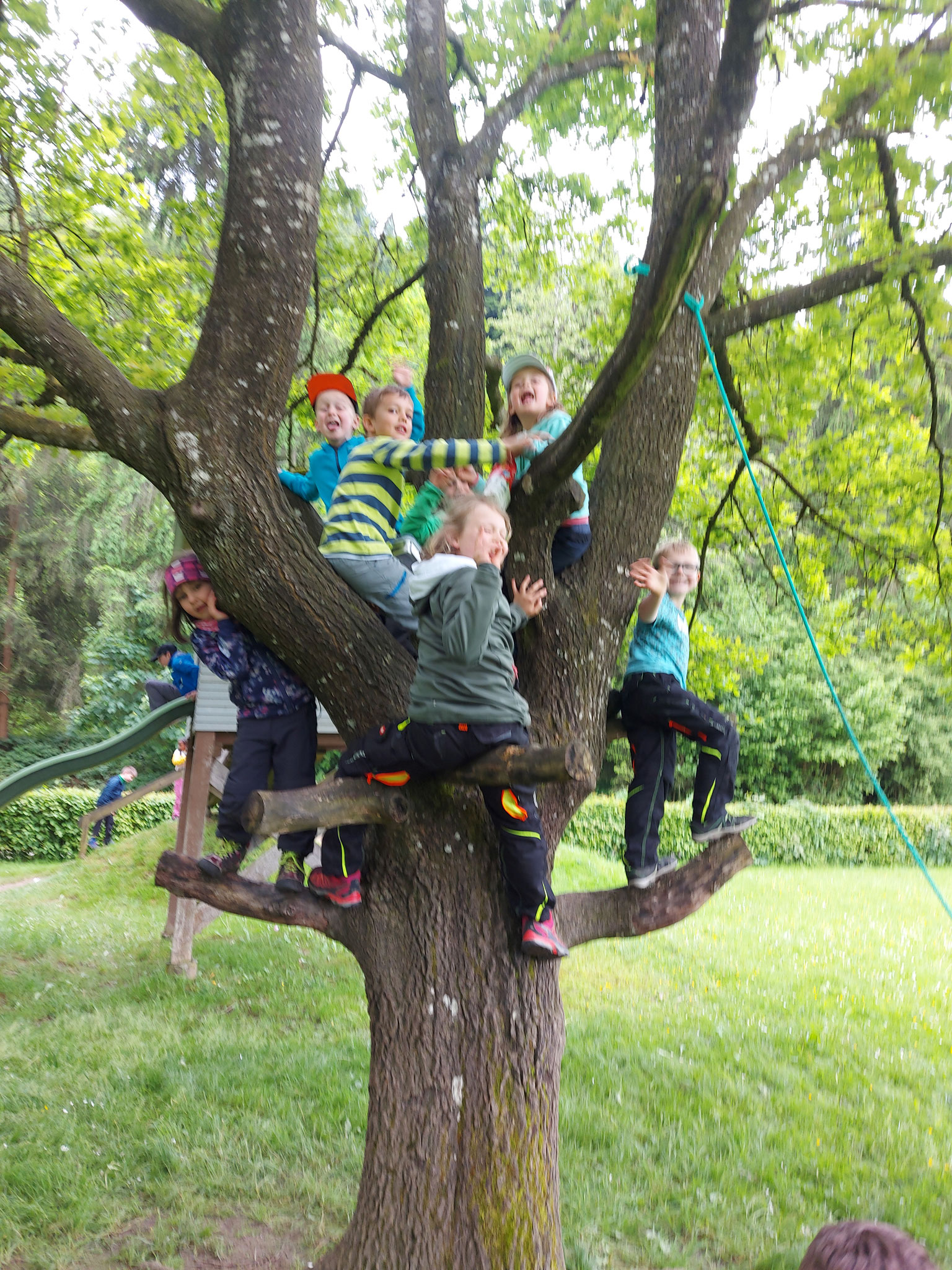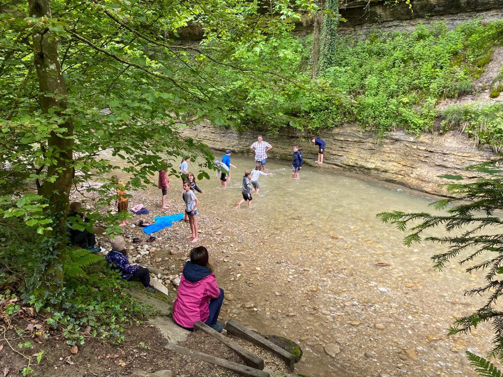 Am Mittag trafen alle Klassen auf dem Spielplatz an der Luther in Schötz ein. Es war bereits eingefeuert, damit die Kinder ihre Wurst grillieren konnten oder besser gesagt, grillieren liessen, damit sie sofort wieder auf die Bäume konnten. Mutige durften auch Barfuss in die Luther steigen - das Wasser war eisig und bei einigen Kindern waren letztlich nicht nur die Füsse nass. Zum Glück hatten die meisten ein Badetuch und eine Jacke dabei.