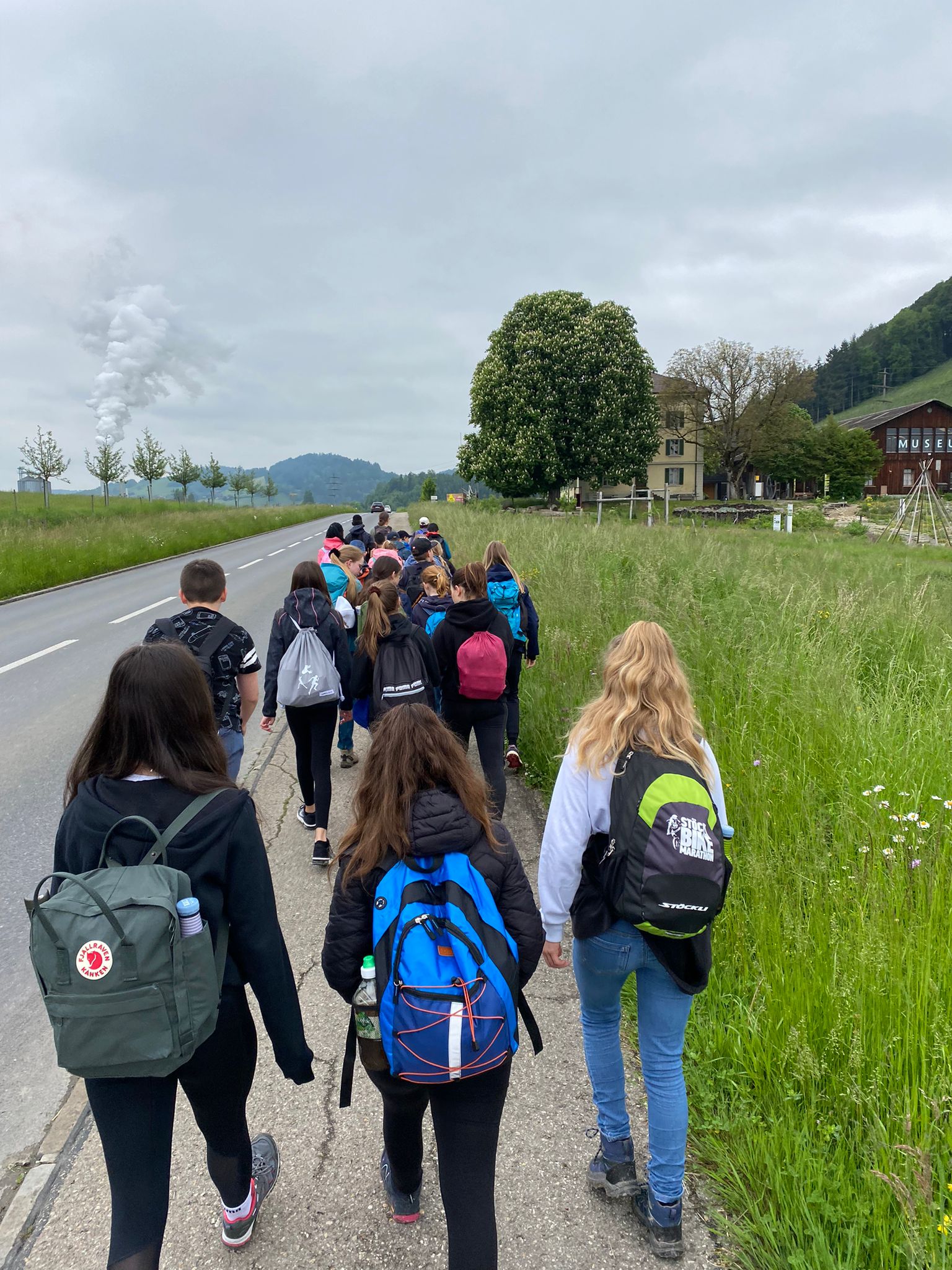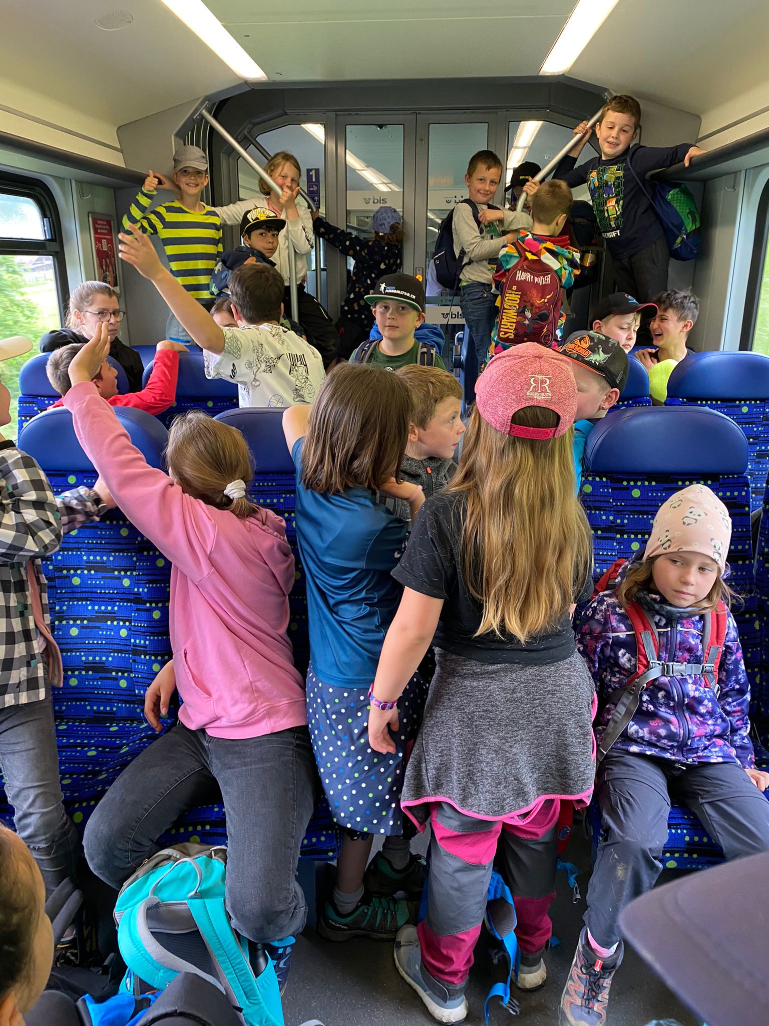 Nach dem Mittag liefen die 2.-6. Klasse nach Gettnau zum Bahnhof, die 1./2. Klasse und der Kindergarten stiegen in Schötz ins Postauto, um wieder nach Menznau zu gelangen.