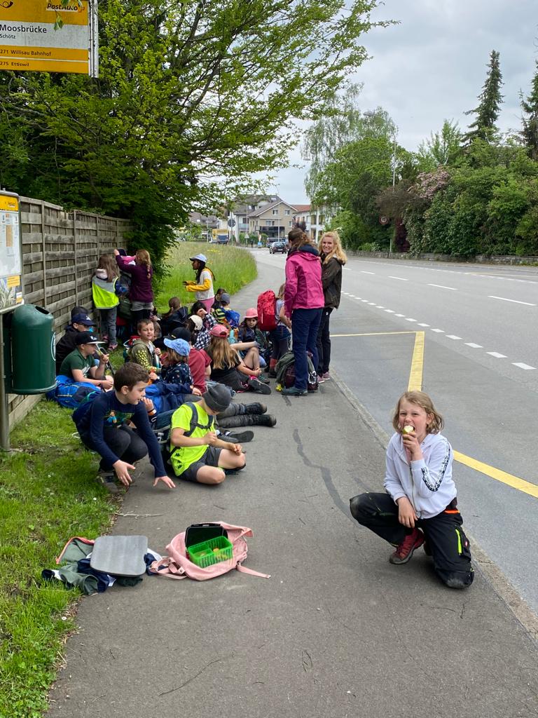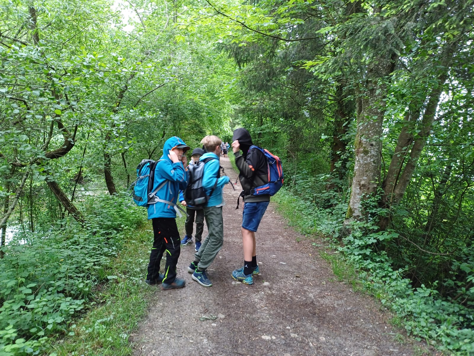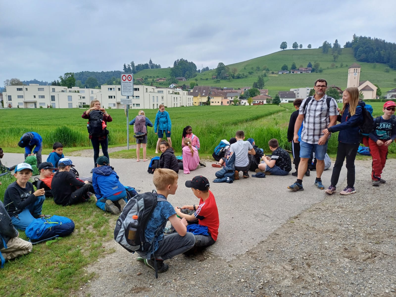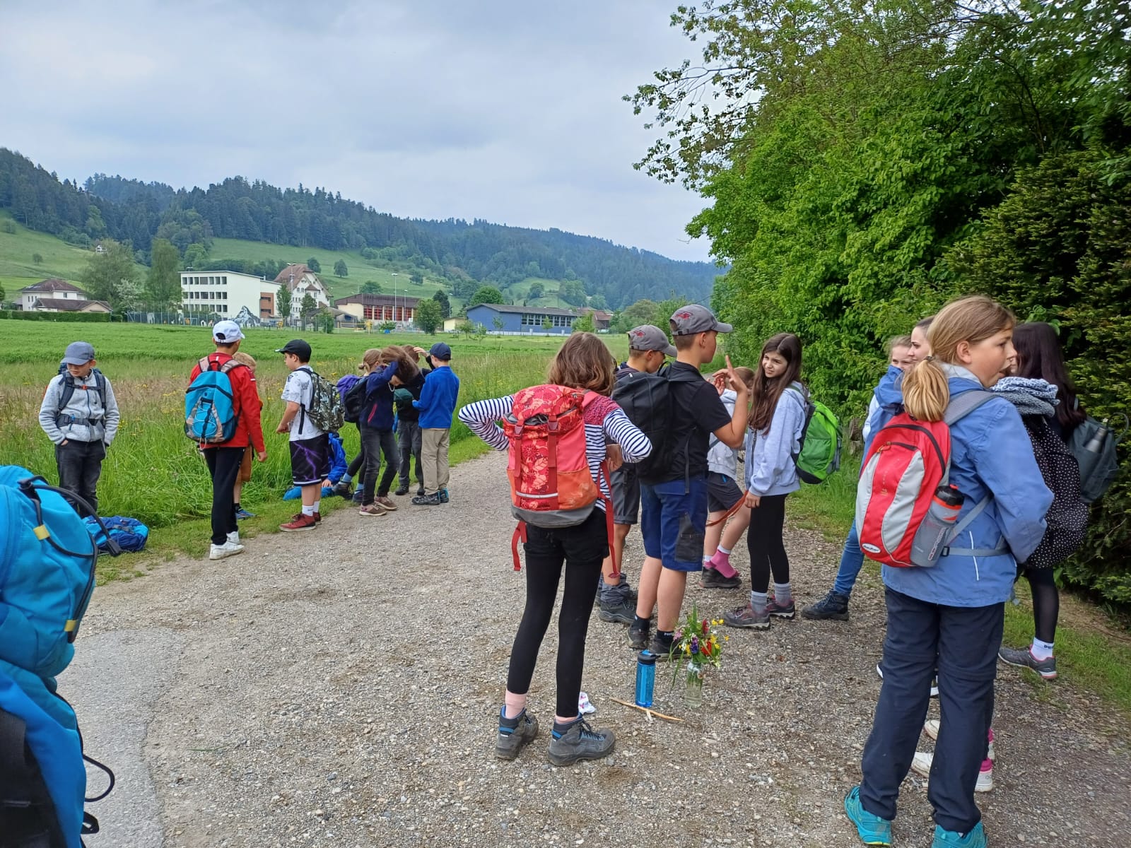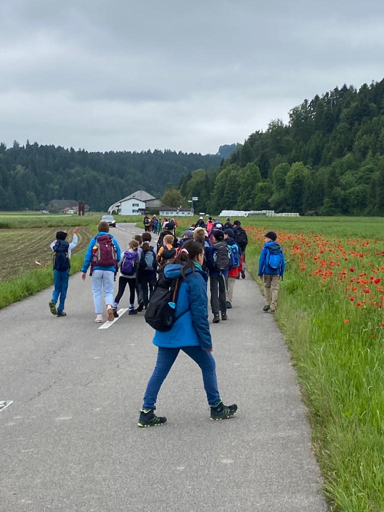 Zu unterschiedlichen Startzeiten und auf unterschiedlichen Routen durften die Kinder von Kindergarten bis zur 6. Klasse eine regenfreie Frühlingswanderung erleben. Viele Gespräche konnten geführt werden, welche im Unterricht manchmal zu wenig Zeit finden.