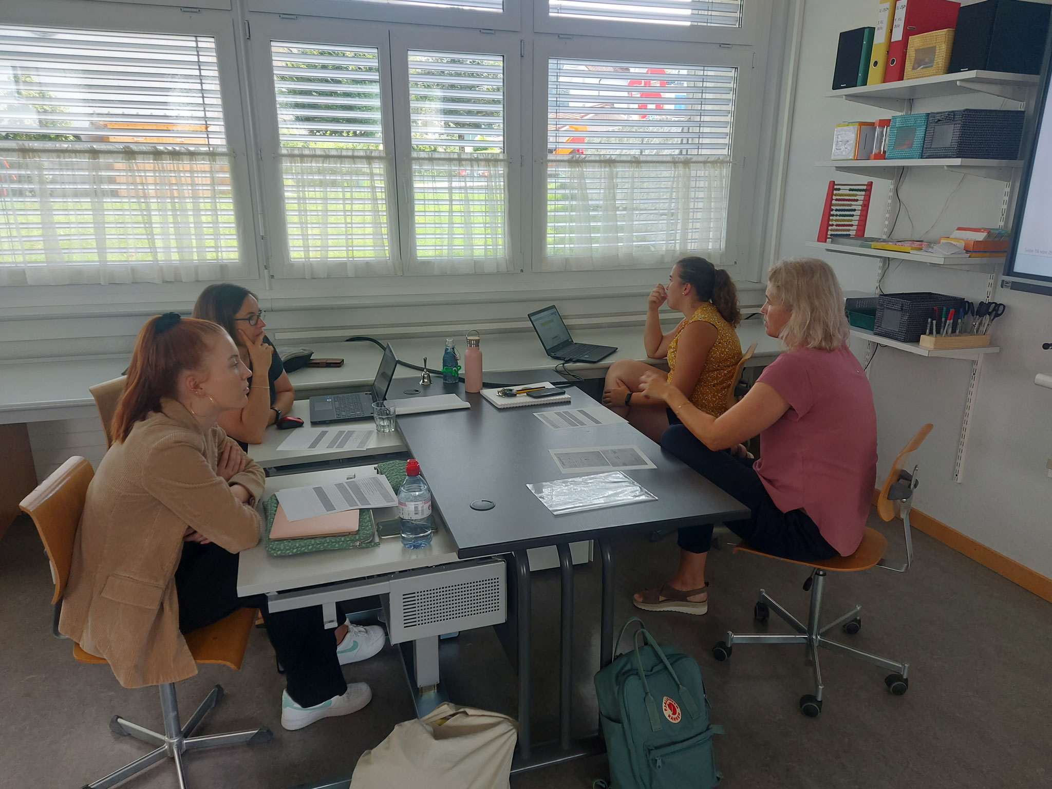 Für eine interne Weiterbildung am Donnerstagnachmittag trafen auch die restlichen Lehrpersonen ein. Es ging um das Thema «Was ist guter Unterricht» und wie können wir dies mit dem 360-Grad-Feedback standardmässig überprüfen. Die Thematik ist ein Entwicklungsziel aus der letzten Externen Evaluation. Nach einem kurzen theoretischen Input durch die Gesamtschulleitung ging es für die Lehrpersonen in Kleingruppen in der Erarbeitungsphase. Im Vorfeld definierte die Schulleitung die Kriterien und Indikatoren für das Schulleitungsfeedback und dem kollegialen Feedback. In einer ersten Phase befassten sich die Kleingruppen mit einem Merkmal des guten Unterrichtes nach Hilbert Meyer und passten die Indikatoren an. In einer zweiten Phase galt es aus diesen Indikatoren das Schüler- und Elternfeedback zu definieren. Die Diskussion in den Gruppen war intensiv. Zuletzt überprüften die Kleingruppen die Arbeiten der anderen Gruppen und gaben ein Feedback dazu. Die Gesamtschulleitung notierte am Schluss die wichtigsten Aussagen. Das Grundgerüst eines standardisierten 360-Grad-Feedbacks konnte an diesem Nachmittag gelegt werden.