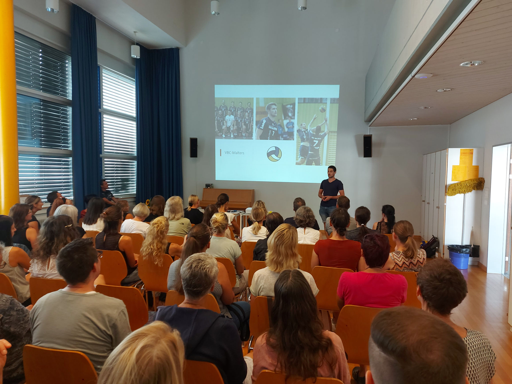 Der grosse Auftritt gehörte an der Konferenz den neuen Lehrpersonen und den neuen Klassenassistenzen. Sie durften sich zum Schuljahresmotto «Bewegig macht Spass» dem Team vorstellen. Das Team erlebte spannende, witzige, bewegte, ideenreiche und besonders kreative Darbietungen. Die beiden Schulleitungen zeigten den Stand des Leistungsauftrages auf, machten nach dieser eher trockenen Materie einen bewegten Input und gaben diverse Informationen weiter.