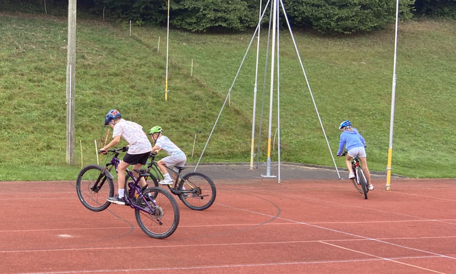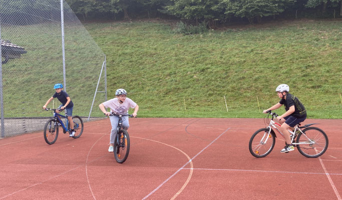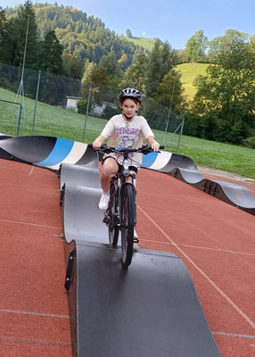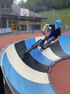 Wir waren am Dienstag mit dem Fahrrad auf dem Pump-Track bei der Rickenhalle. Es war zwar nass, aber es ging trotzdem gut zum Fahren. Es war sehr cool auf dem Pump-Track. Es gab Kinder, die es schon gut konnten, weil sie schon in ihrer Freizeit drauf waren. Andere hatten noch etwas Mühe, da sie das erste Mal auf der Anlage waren. Doch Übung macht den Meister.