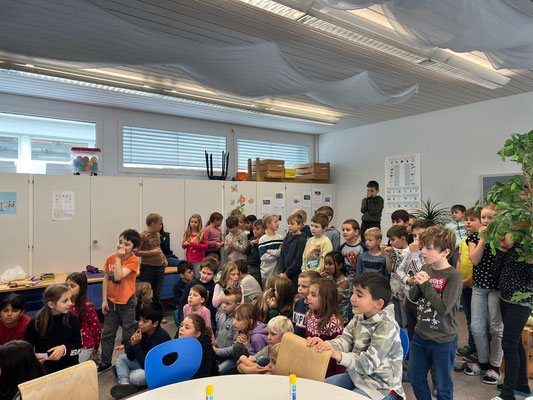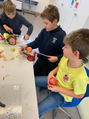 Heute sind die Kinder nicht nur mit ihrer Schultasche in die Schule gekommen. Nein, sie waren ausgerüstet mit vier Äpfeln, einem Rüstbrettli und einem Messer.