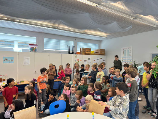 Die Kinder konnten den ganzen Morgen bei sechs verschiedenen Lehrpersonen rund ums Thema Apfel arbeiten und viel handelnd Lernen.